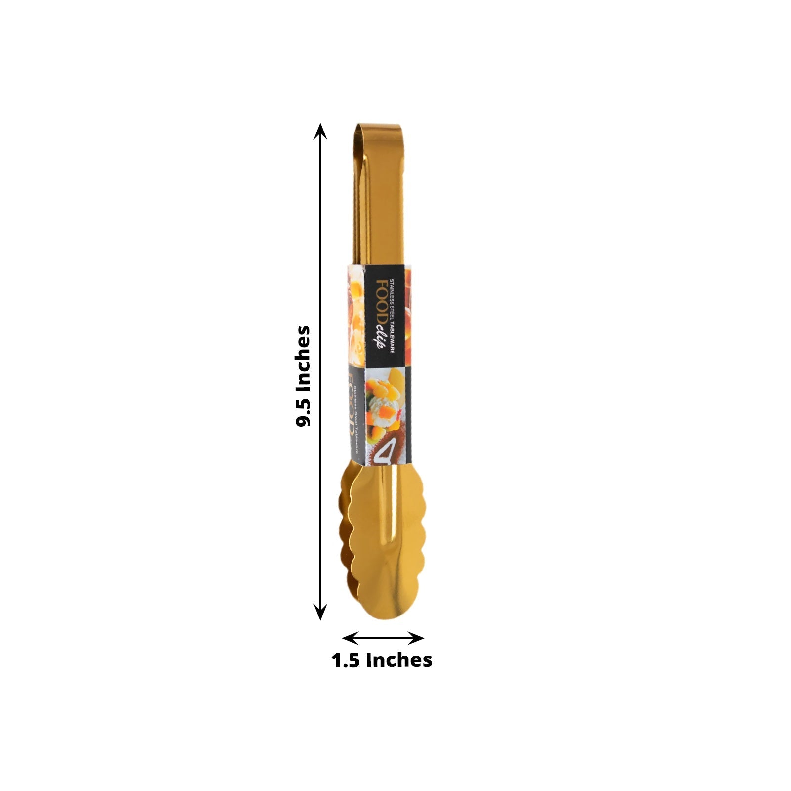 10-Pack Metal Serving Tongs Gold - Stainless Steel Food Safe Kitchen Tongs with Scalloped Gripping Edge for Indoor & Outdoor Gatherings 9.5"