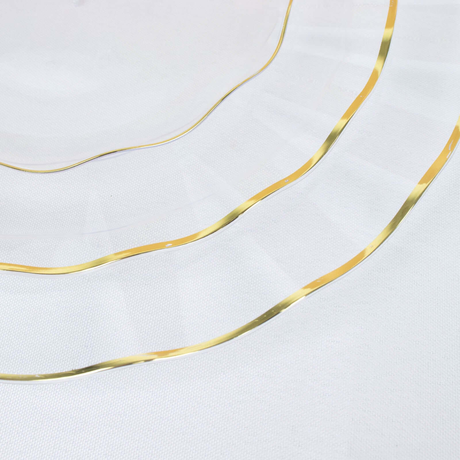 10-Pack Plastic Round 6" Dessert Plates in Clear Ruffled Rim with Gold Edging - Sturdy Disposable Salad Appetizer Dinnerware