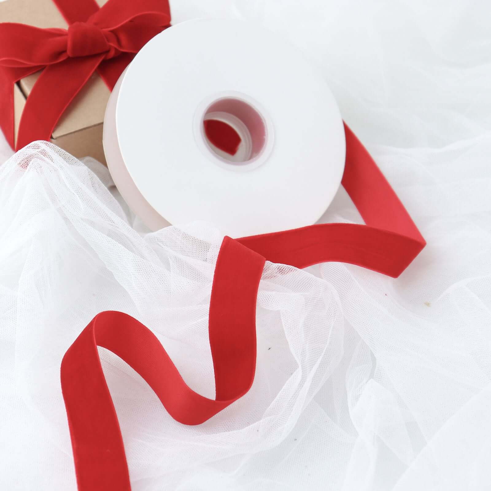 10 Yards Red 1" Velvet Single Faced Ribbon Spool, DIY Craft Supplies, Velvet and Nylon Ribbon Roll
