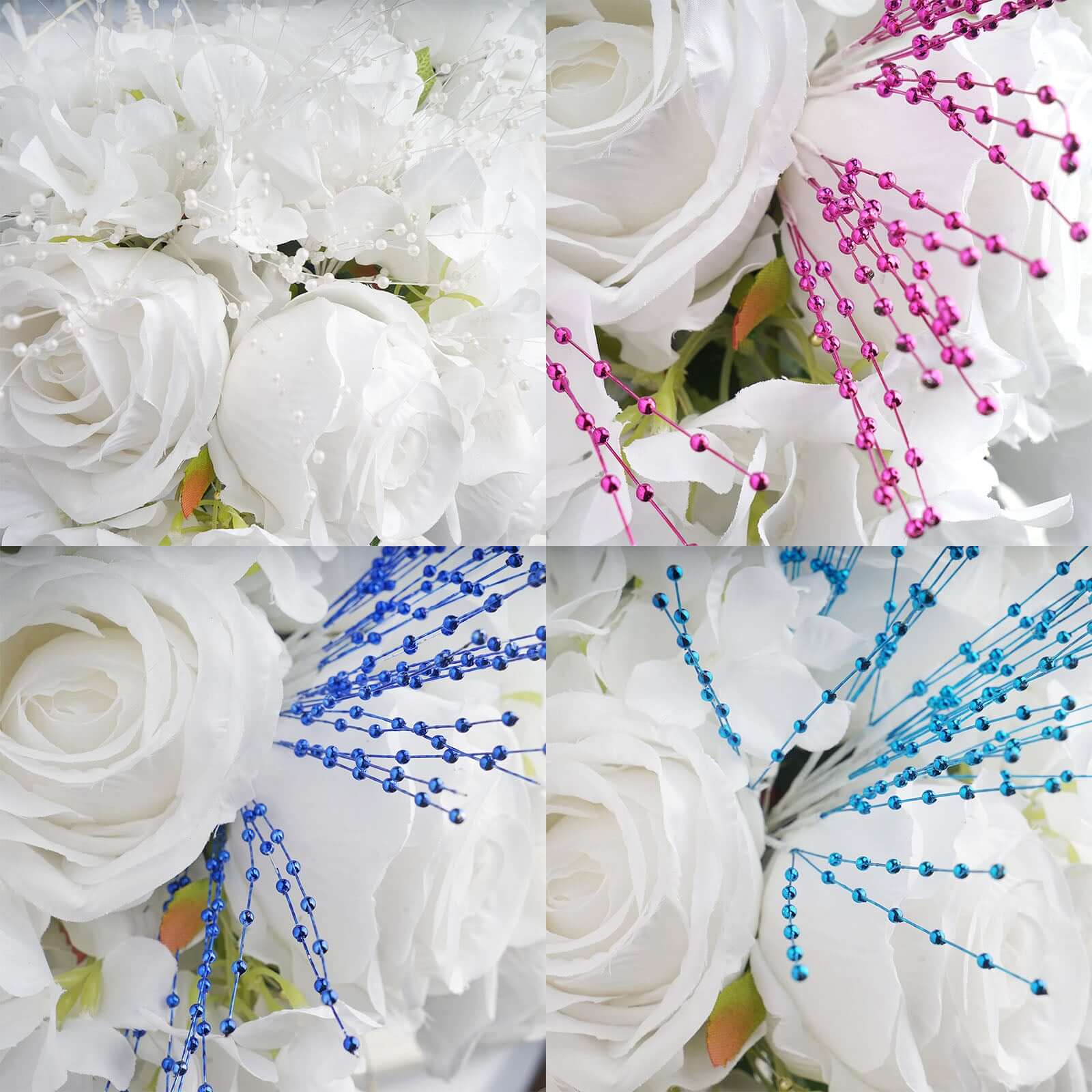 12 Bunches Faux Pearl Bead Spray Vase Fillers in Burgundy - Lustrous DIY Craft Beads 7"