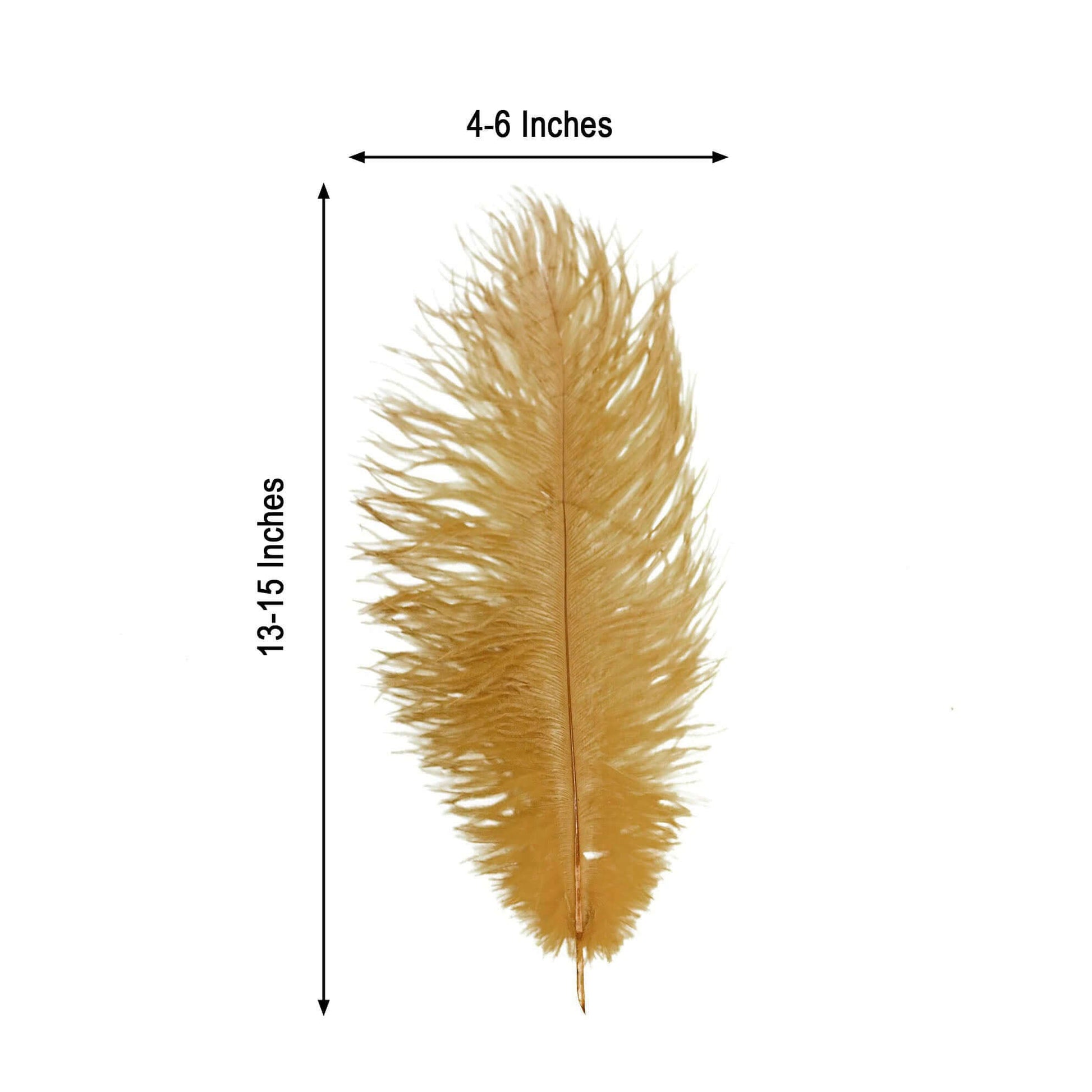 12 Pack 13"-15" Gold Natural Plume Real Ostrich Feathers, DIY Centerpiece Fillers