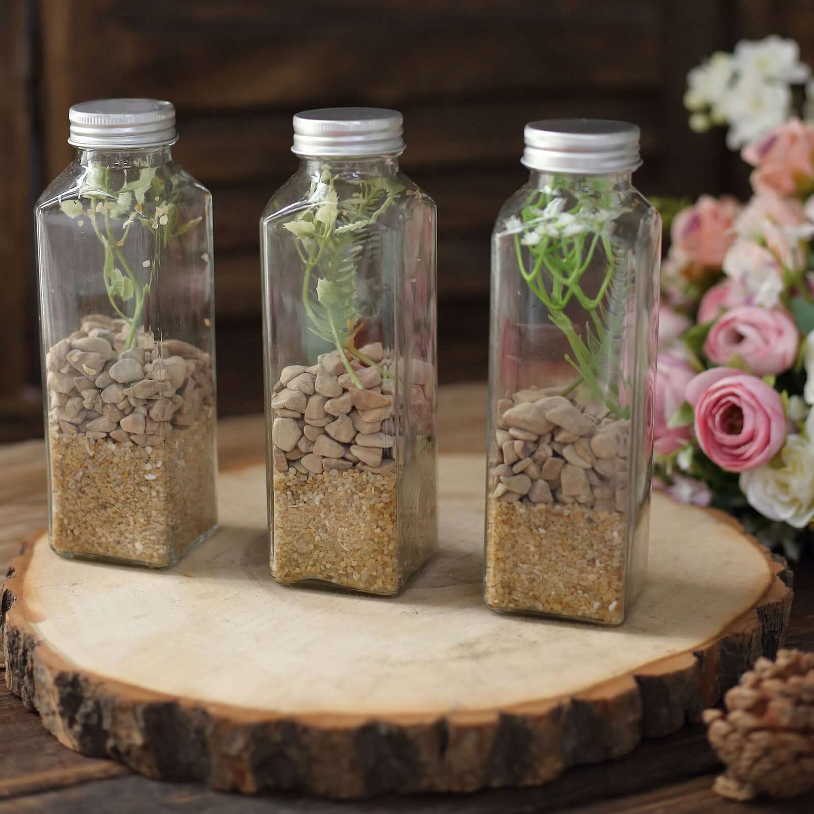 12-Pack Glass Jars French Square Design Clear with Aluminum Caps - Refillable Storage Bottles for Pantry & Organization 7" 12oz