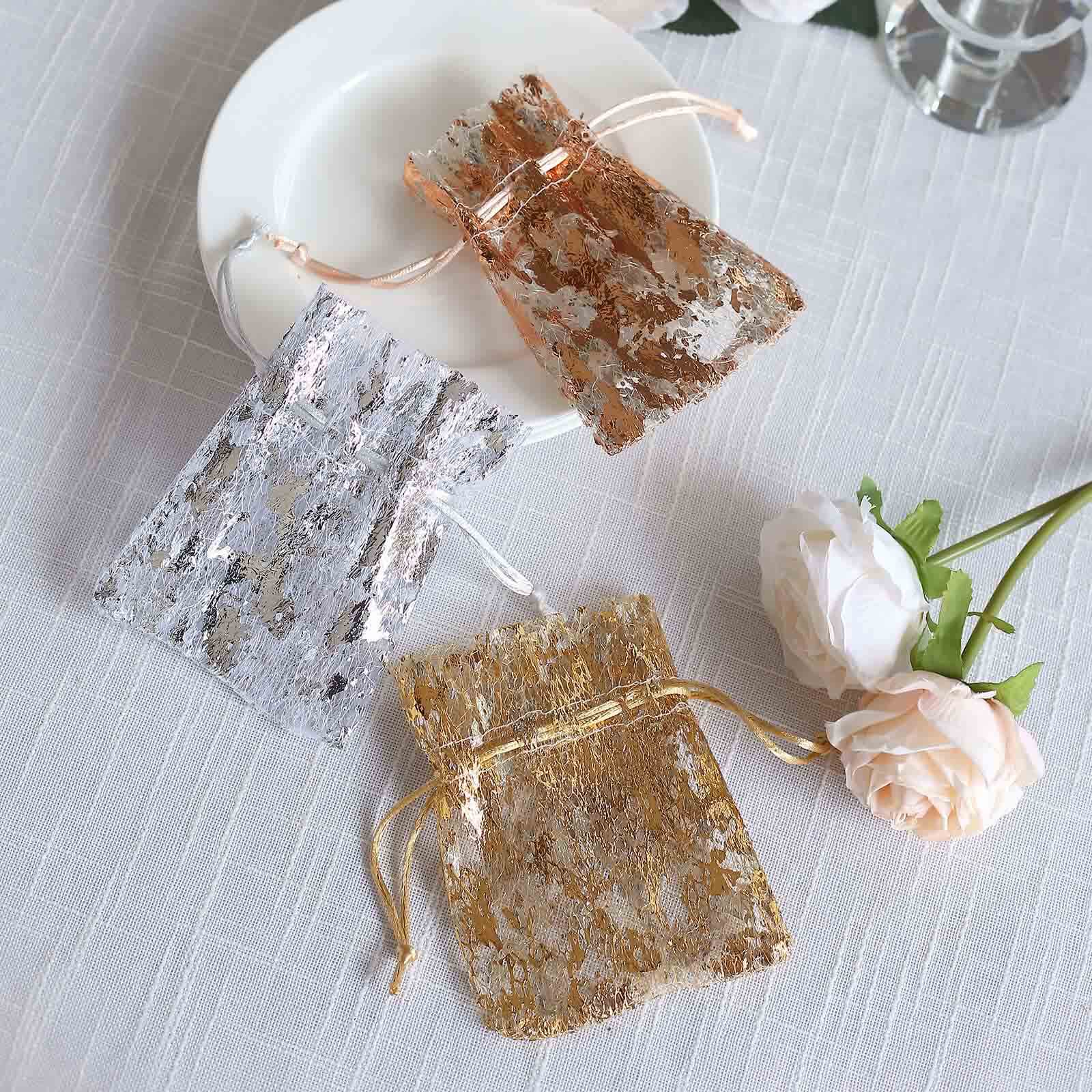 12 Pack Metallic Rose Gold Foil Polyester Drawstring Candy Bags, Wedding Party Favor Bags - 4"x5"