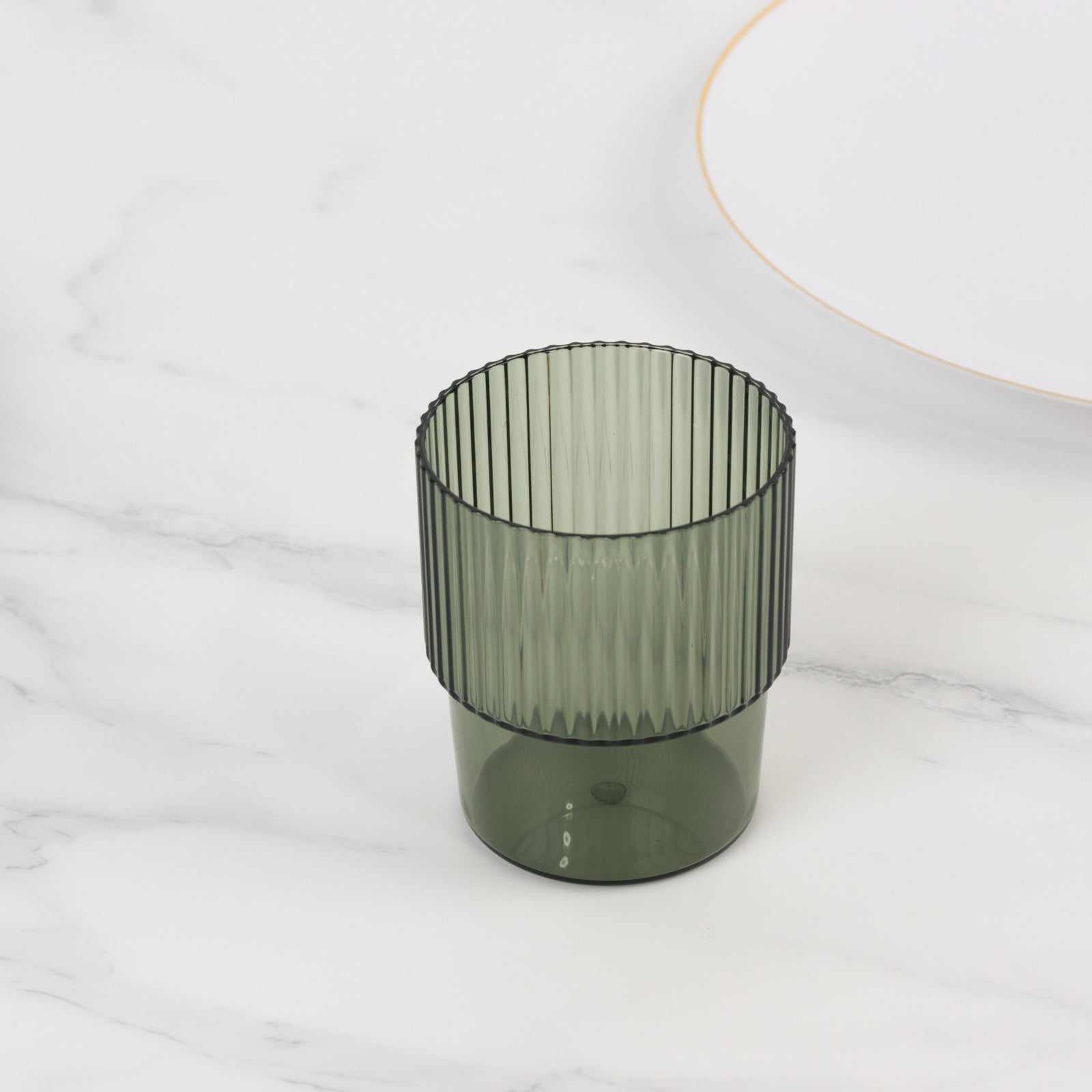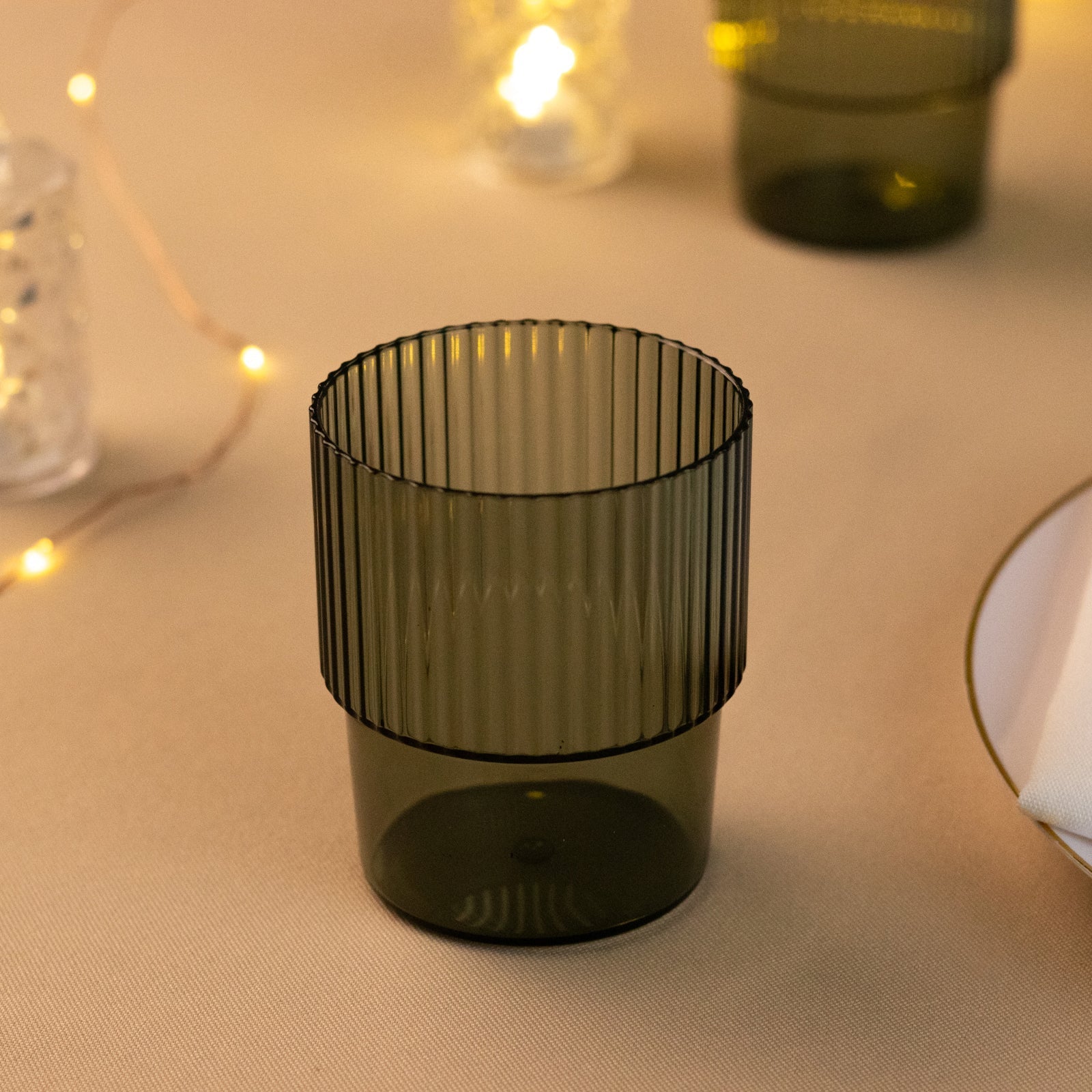 12-Pack Plastic Short Drinking Glasses Hunter Emerald Green Ribbed Pattern Stackable - Reusable Tumblers 7oz