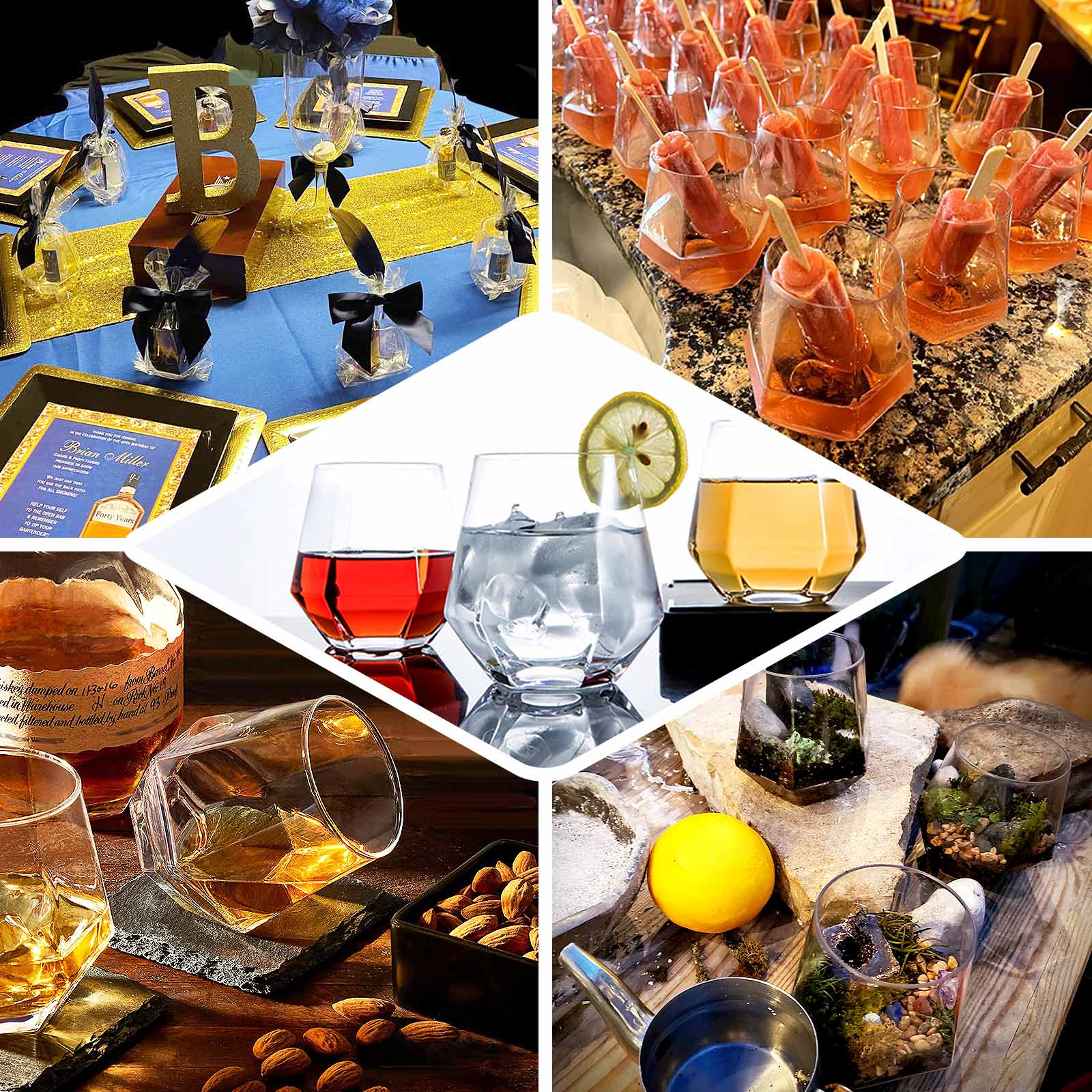 12-Pack Plastic Stemless Wine Glasses Clear Diamond Shaped - Reusable Whiskey Cups 12oz