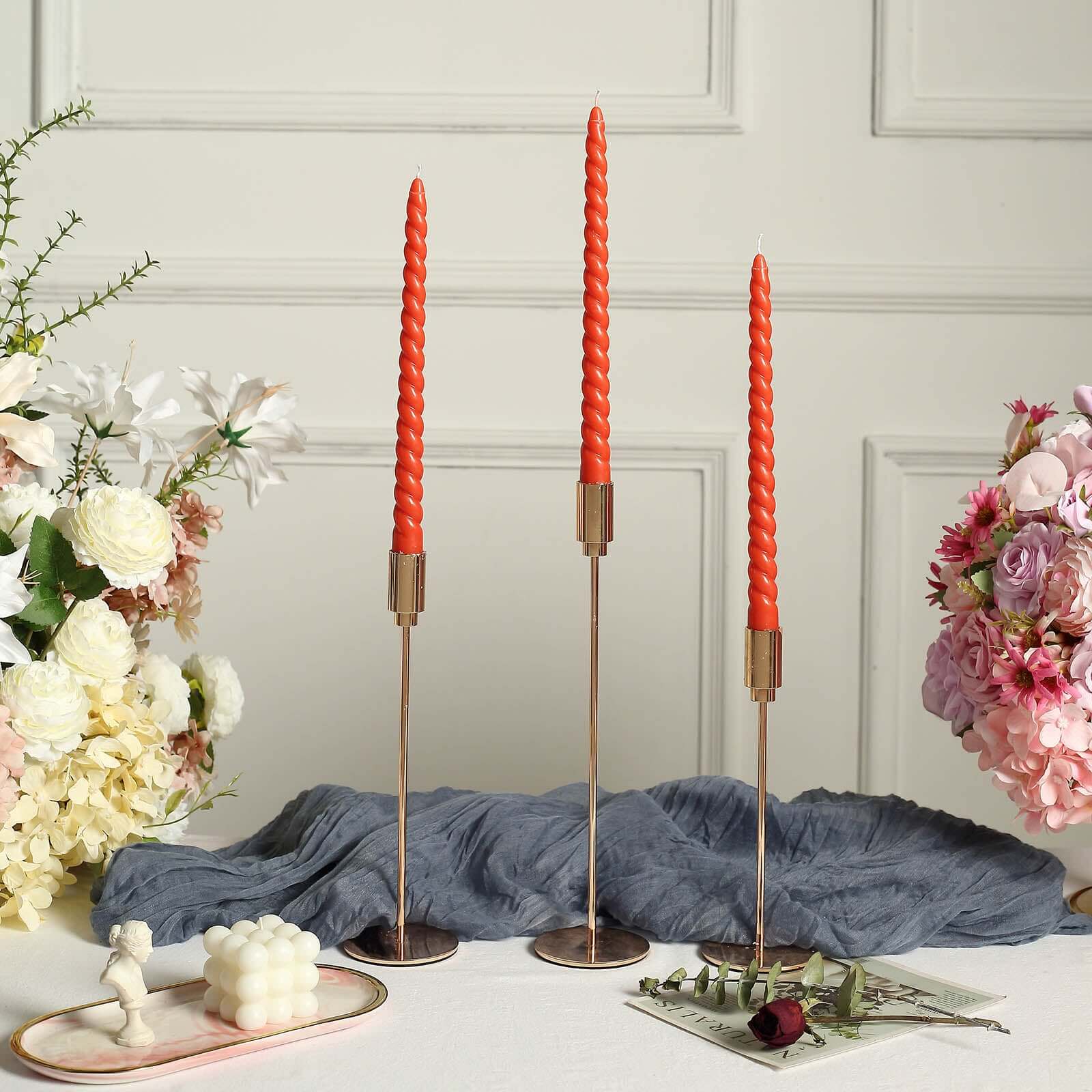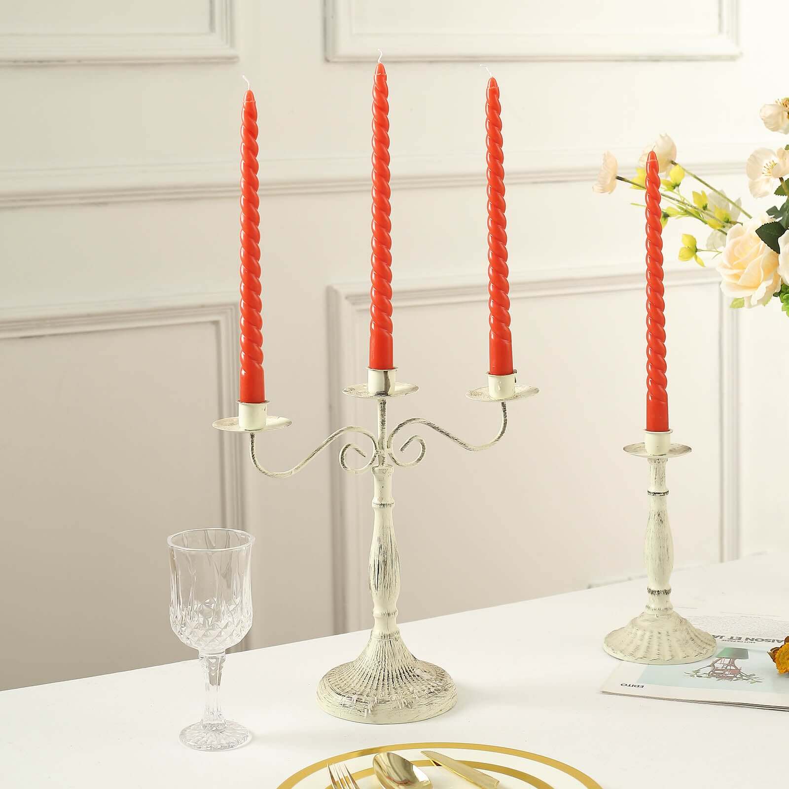12-Pack Taper Candles Spiral Long Burn Wick Design Terracotta (Rust) - Premium Unscented Wax Dinner Candle Sticks 11"