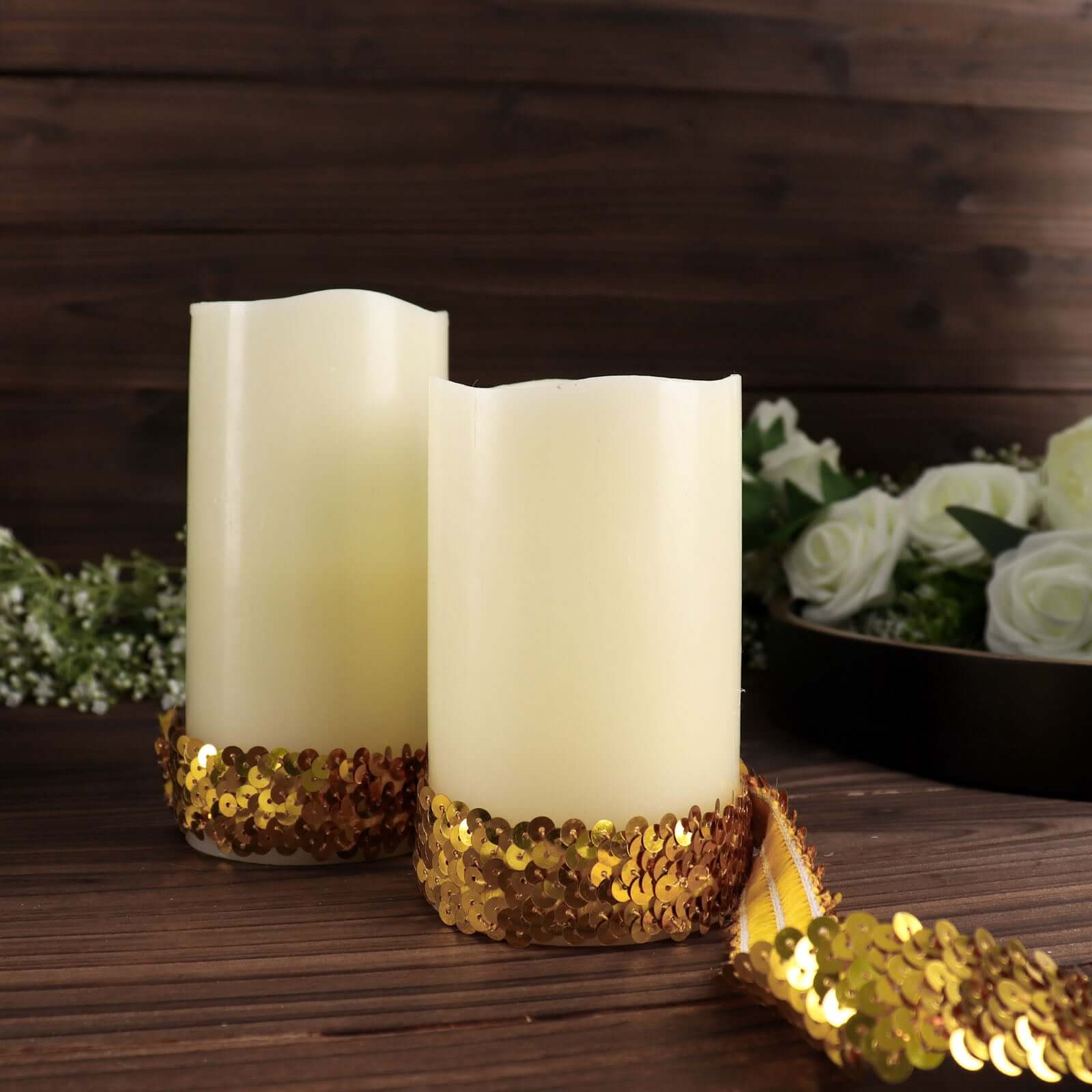 1"x10 Yards Metallic Gold Sequin Stretch Fabric Ribbon, Elastic Lace Trim, Shiny Glitter Craft Fabric