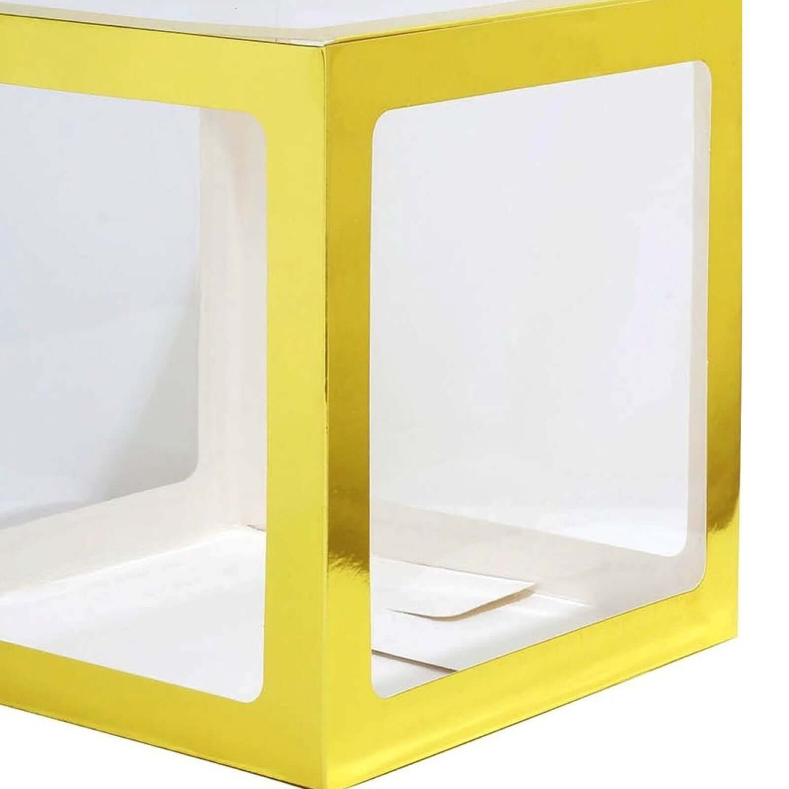 2 Pack 12" Metallic Gold Clear Baby Shower Party Decoration Boxes, Transparent DIY Balloon Boxes