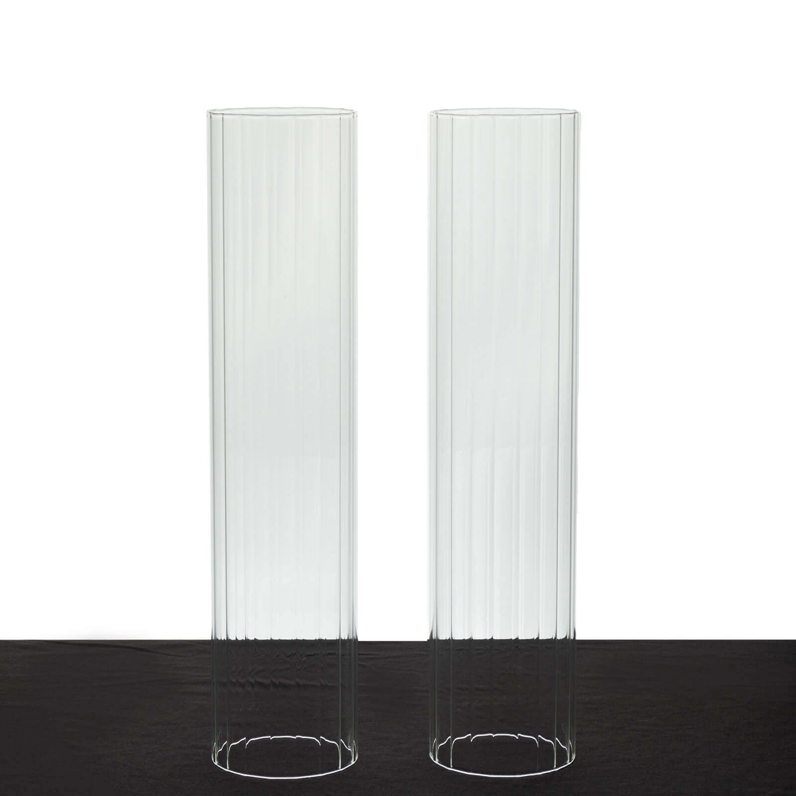 2-Pack Clear Ribbed Glass Hurricane Shades Open End Design - Stylish Candelabra Pillar Candle Holder Table Centerpiece 14"
