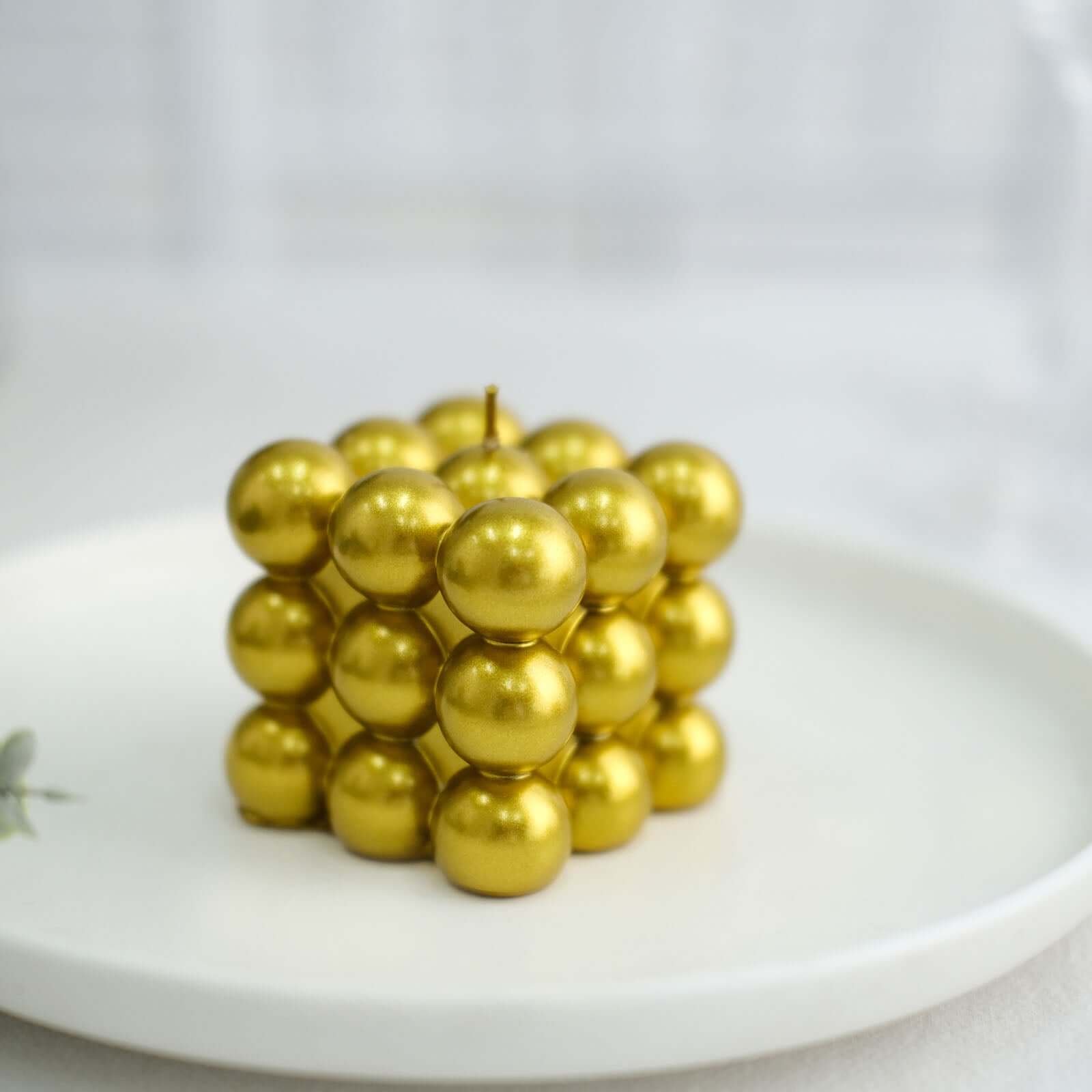 2-Pack Decorative Paraffin Wax Candles Bubble Cube Design Metallic Gold - Unscented Long Burning Pillar Candle Set 2"