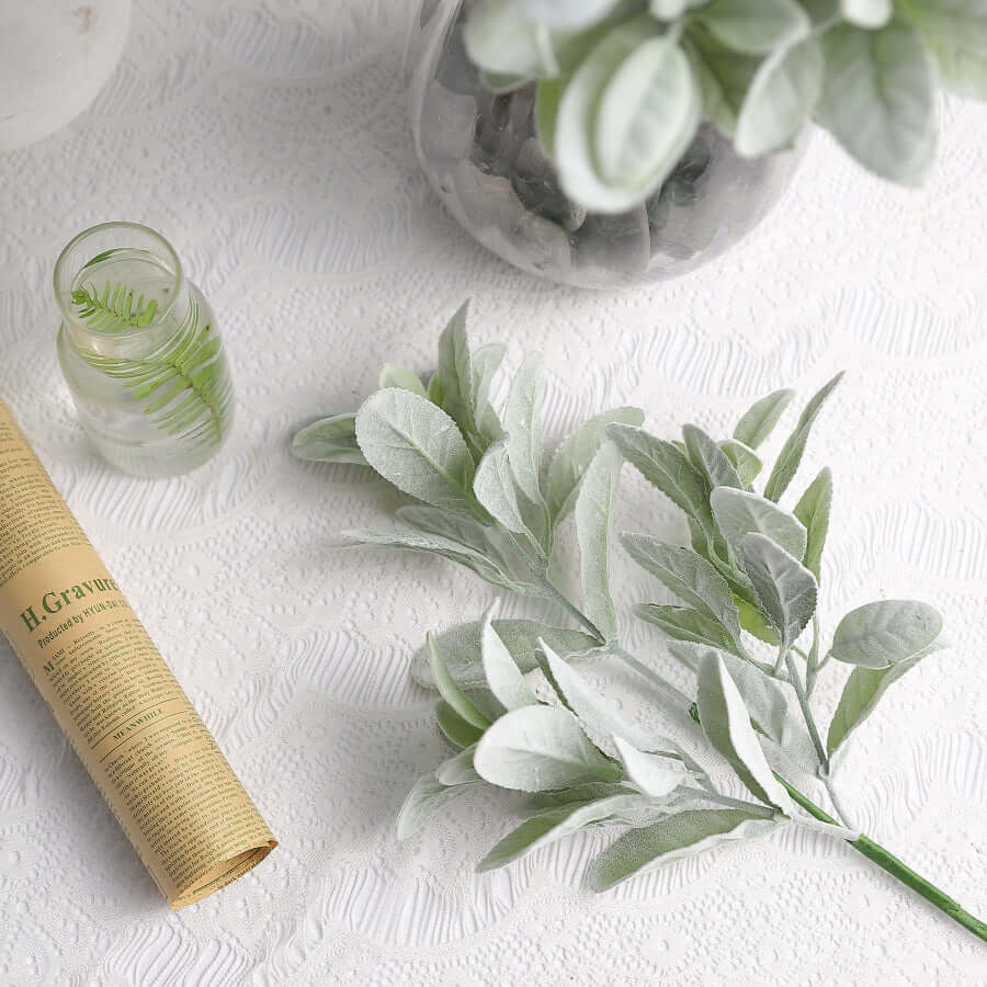 2 Stems 24" Tall Frosted Green Artificial Lambs Ear Leaf Indoor Plant
