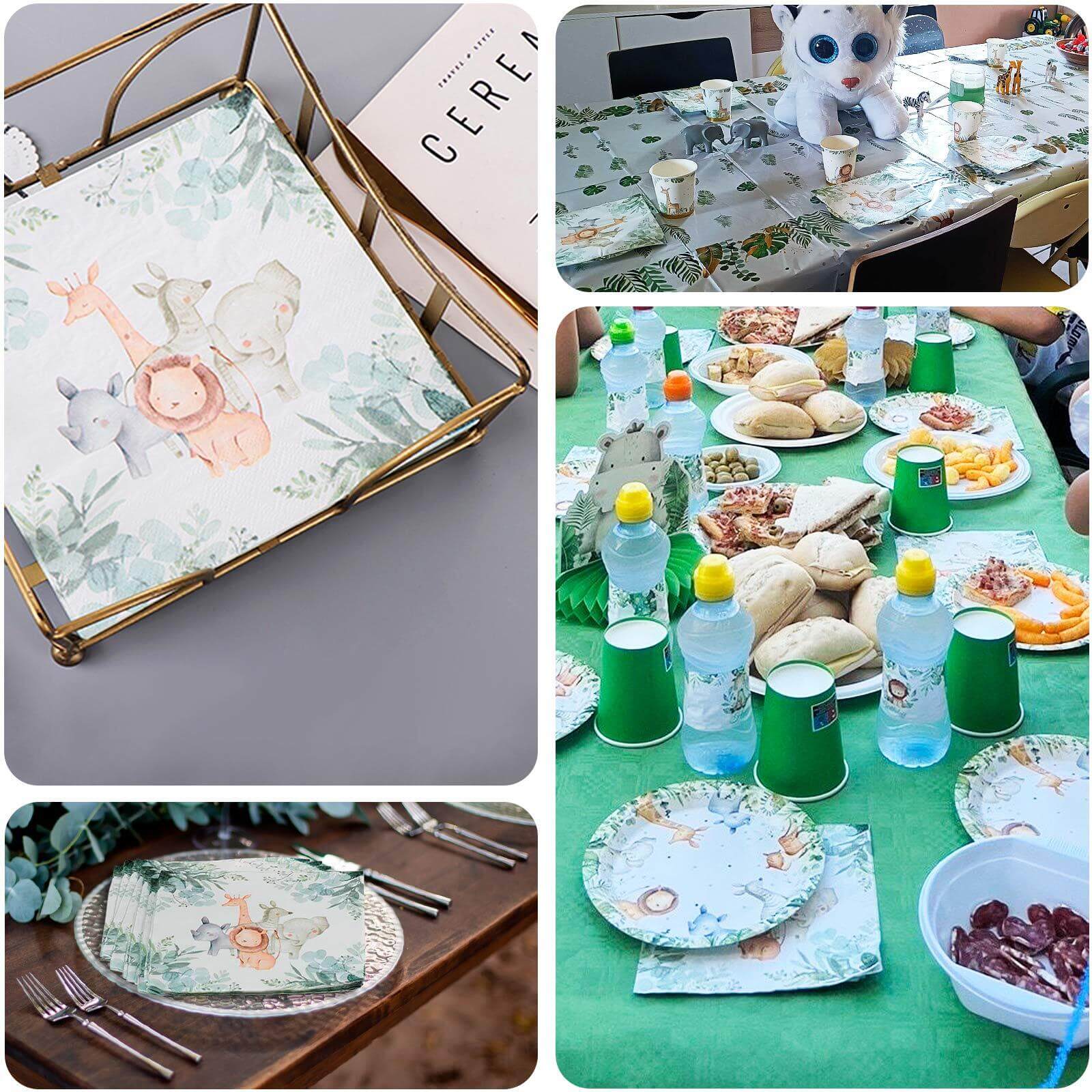 20-Pack Paper Beverage Napkins with Safari Animal Print - Jungle Theme 2 Ply Disposable Party Napkins 6.5"x6.5" 18GSM