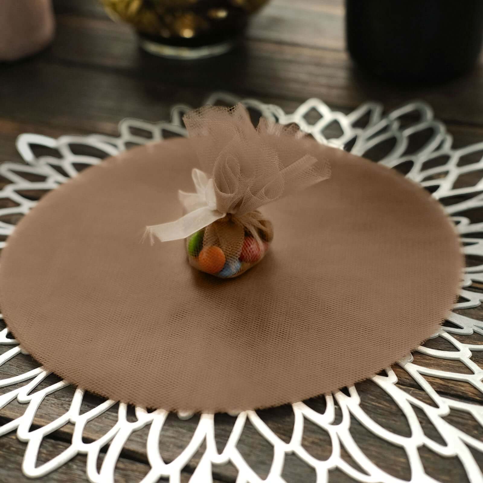 25 Pack 9" Natural Sheer Nylon Tulle Circles Favor Wrap Craft Fabric, DIY Candy Favor Wraps
