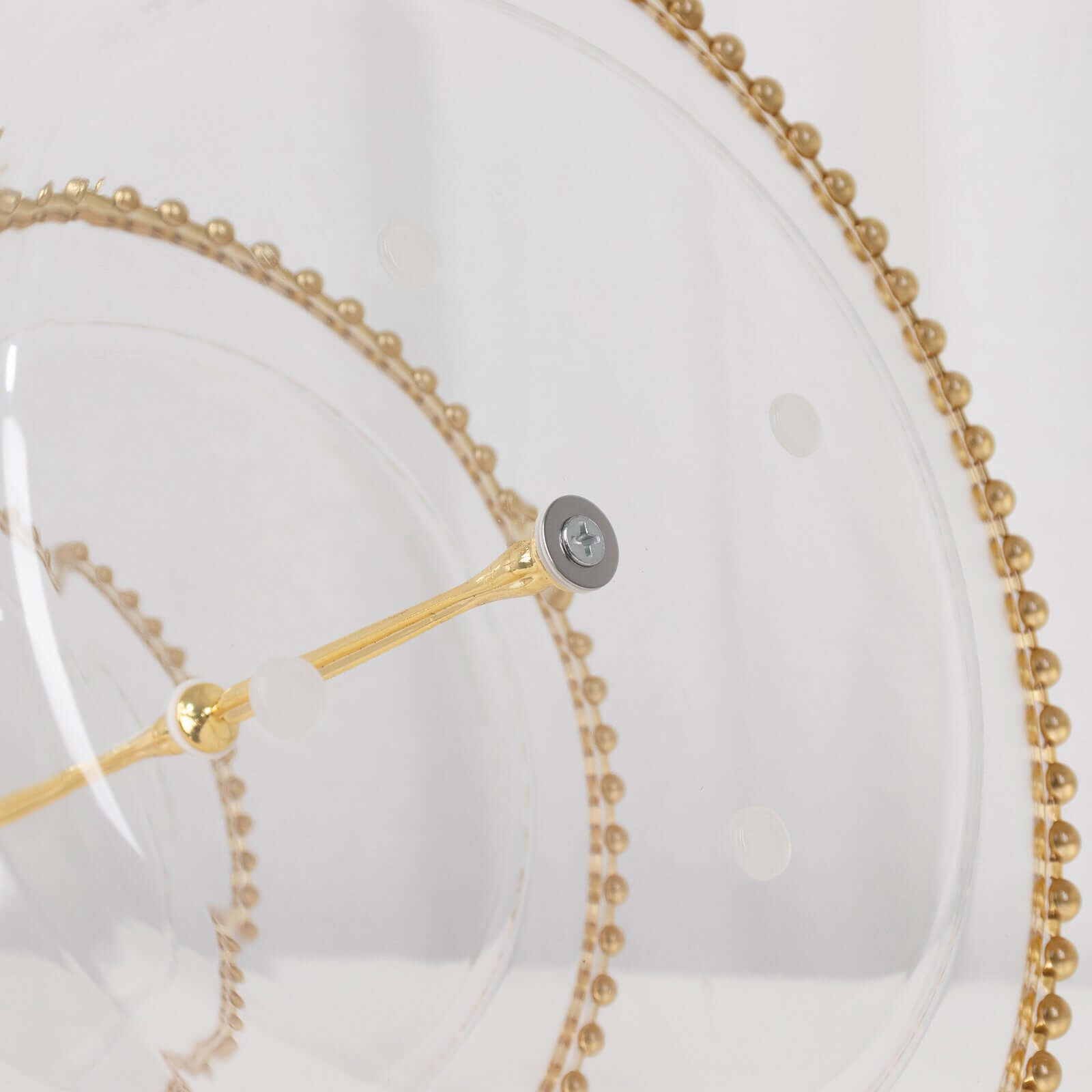 3-Tier Plastic Round Cupcake Tower Stand Clear - Versatile Dessert Display Tea Party Serving Platter with Gold Beaded Rim & Top Handle 14"