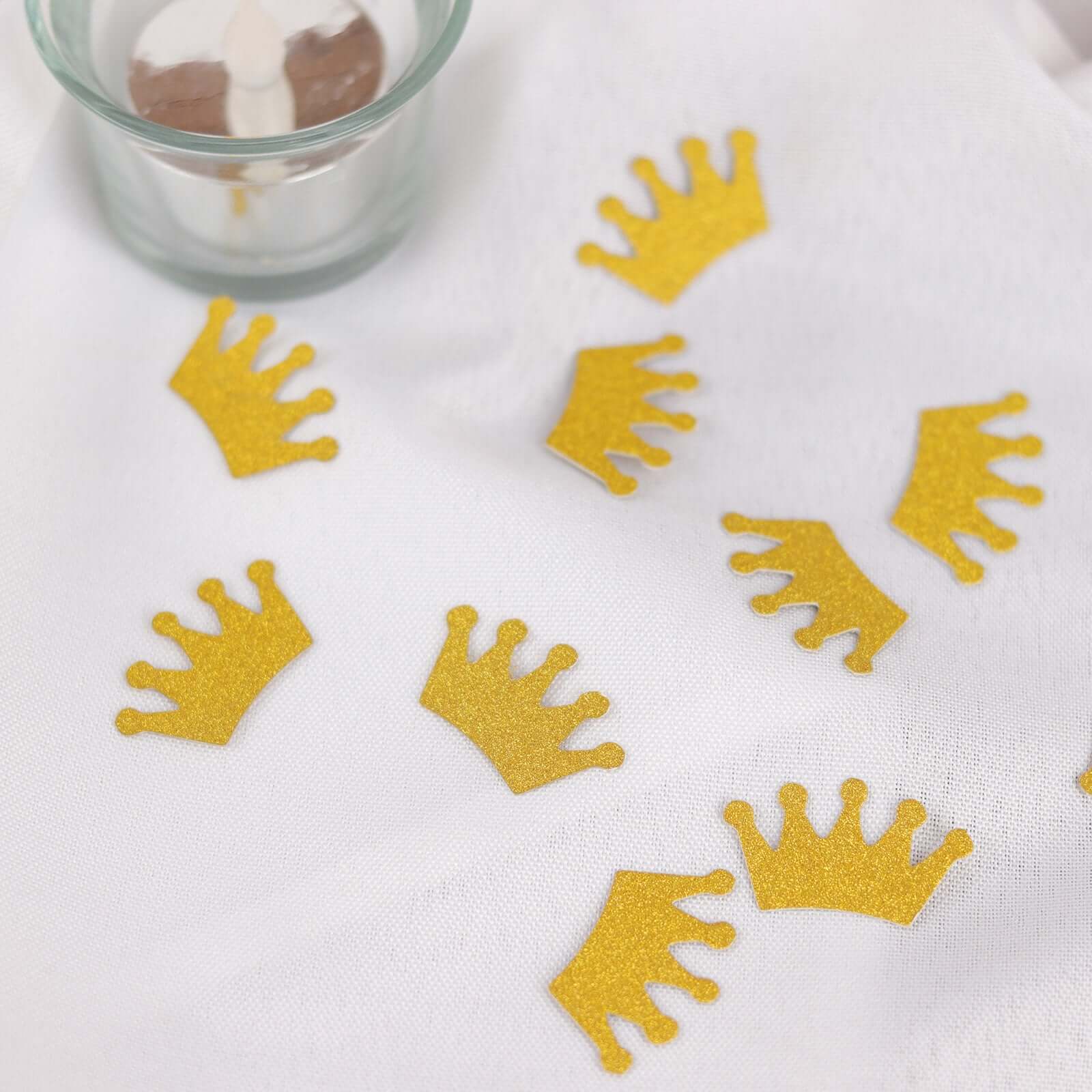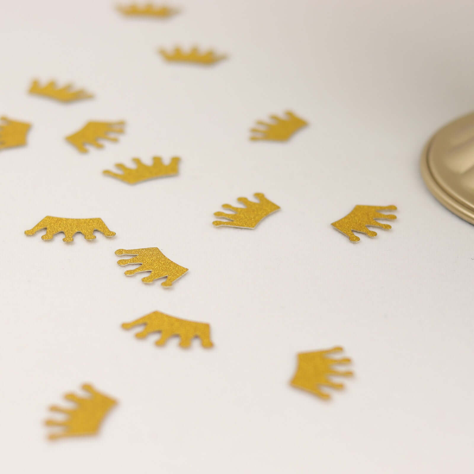 300 Pcs Glitter Princess Crown Paper Confetti Double-Sided Gold, Baby Shower Party Table Scatters - Decorative & Sparkling Design