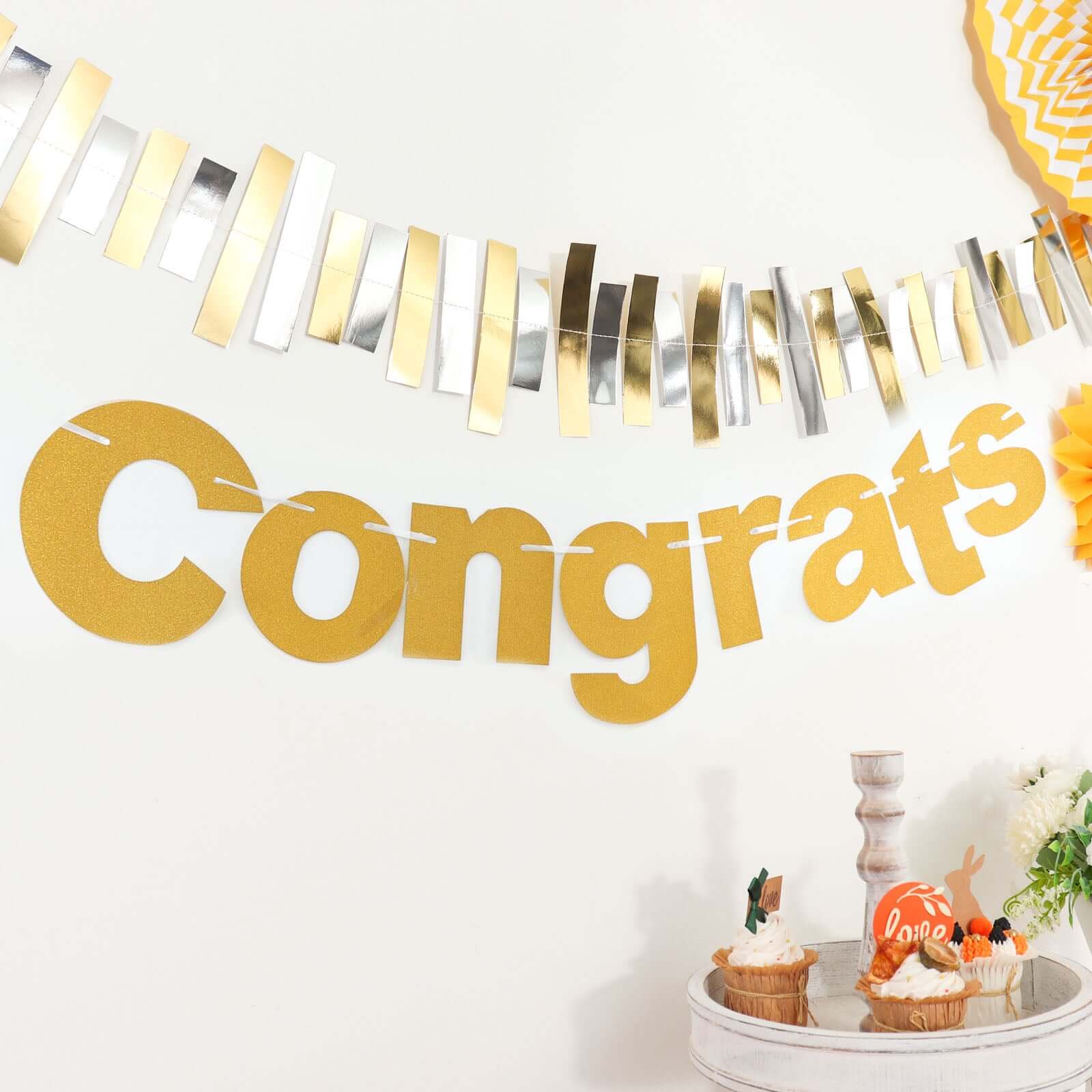 3ft Gold Glittered Congrats Paper Hanging Garland Banner Party Decor