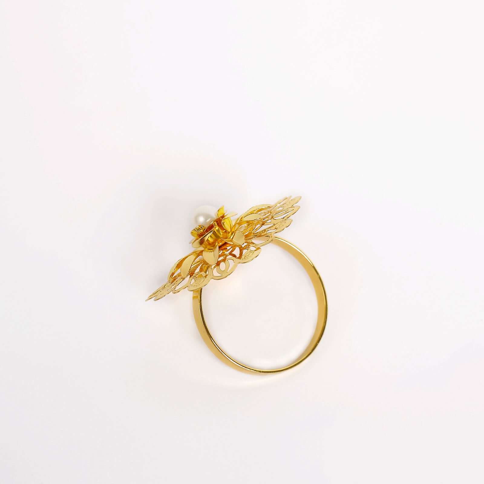 4 Pack 2" Elegant Gold Metal Pearl Floral Serviette Napkin Rings, Daffodil Flower Buckle Napkin Holders