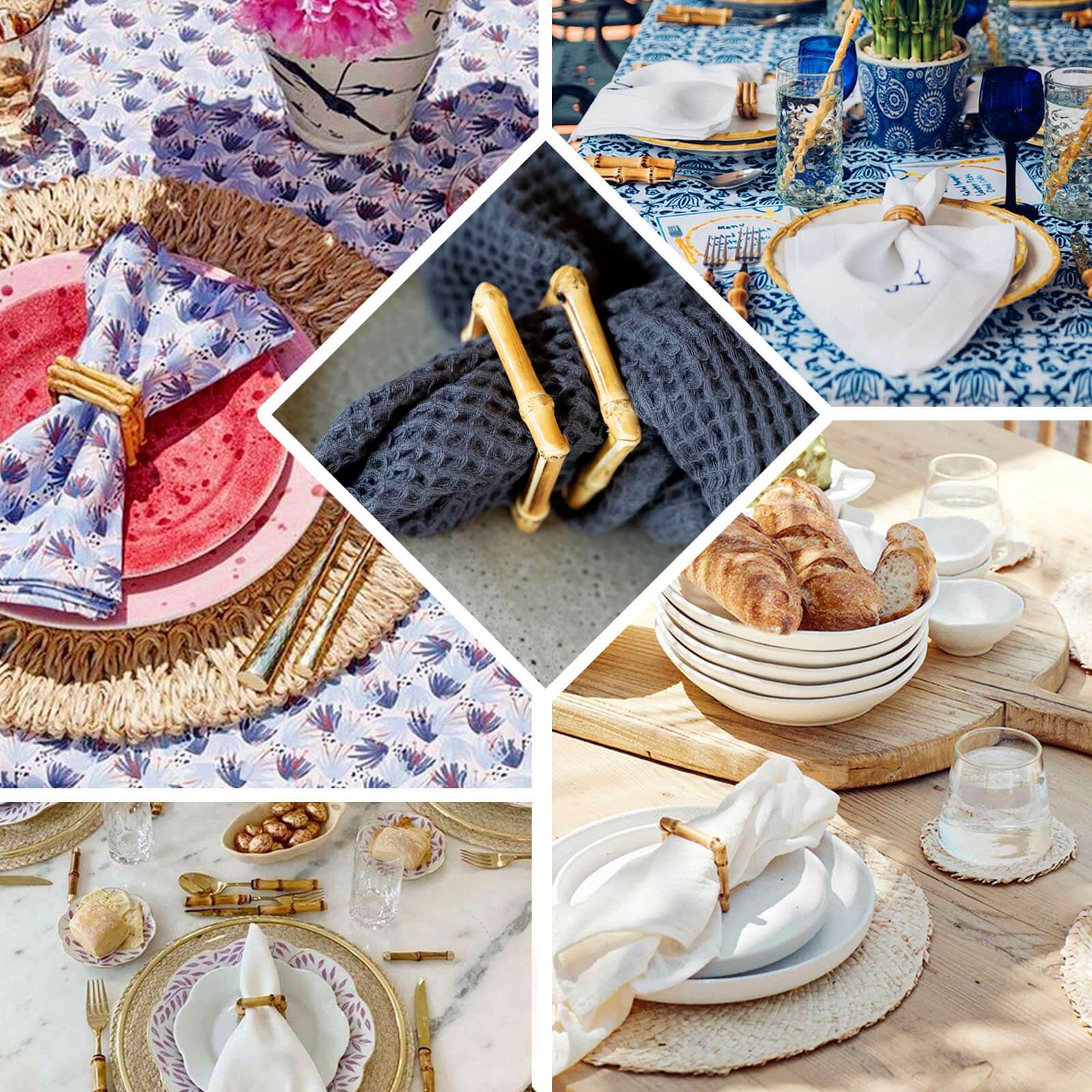 4 Pack Natural Bamboo Wooden Square Napkin Rings, Rustic Boho Chic Napkin Holders