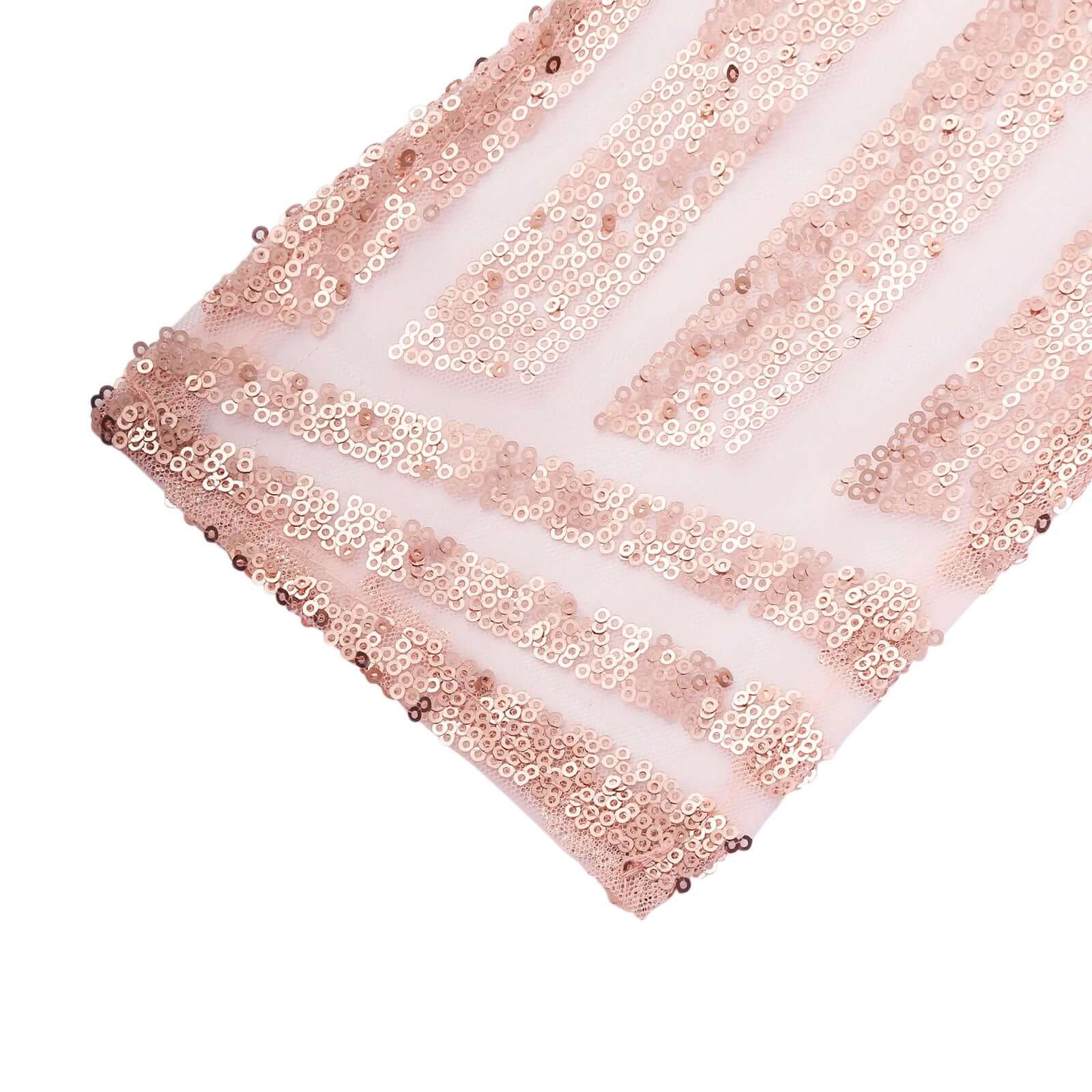 5 Pack Glitz Sequin Chair Sashes with Geometric Diamond Design 6"x88" Rose Gold
