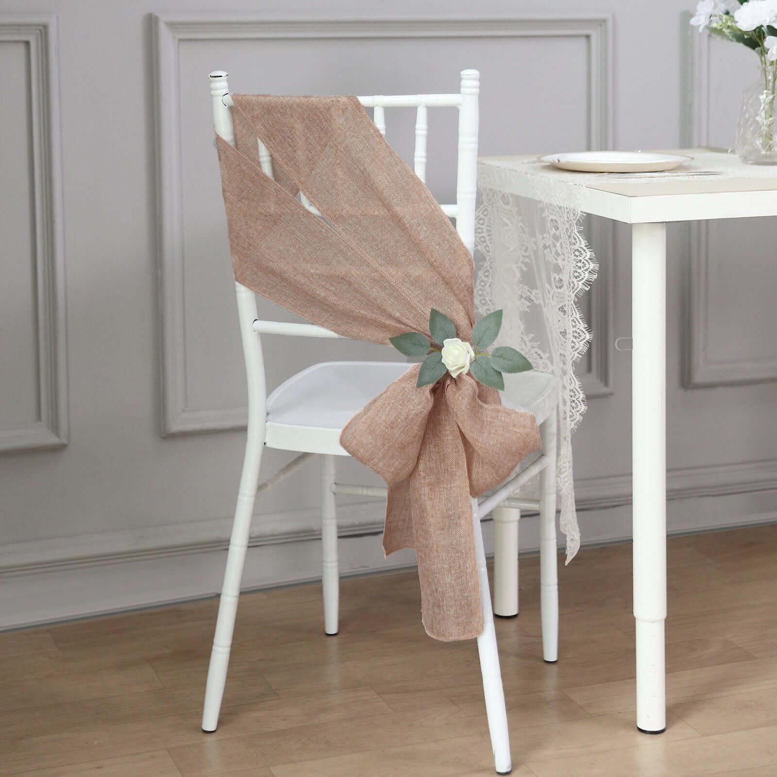 5 Pack Jute Faux Burlap 6"x108" Chair Sashes Dusty Rose - Boho Chic Linen Decor