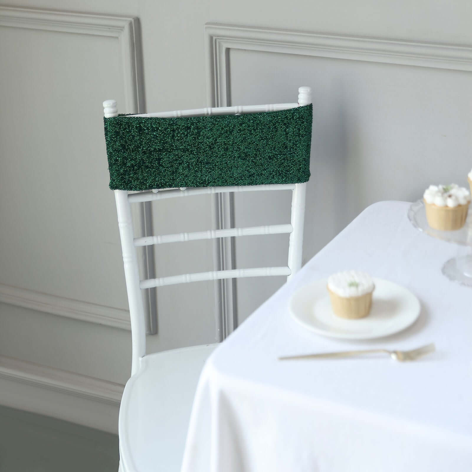 5 Pack Metallic Shimmer Tinsel Spandex Chair Sashes Hunter Emerald Green - Durable and Reusable Stretch Chair Bands