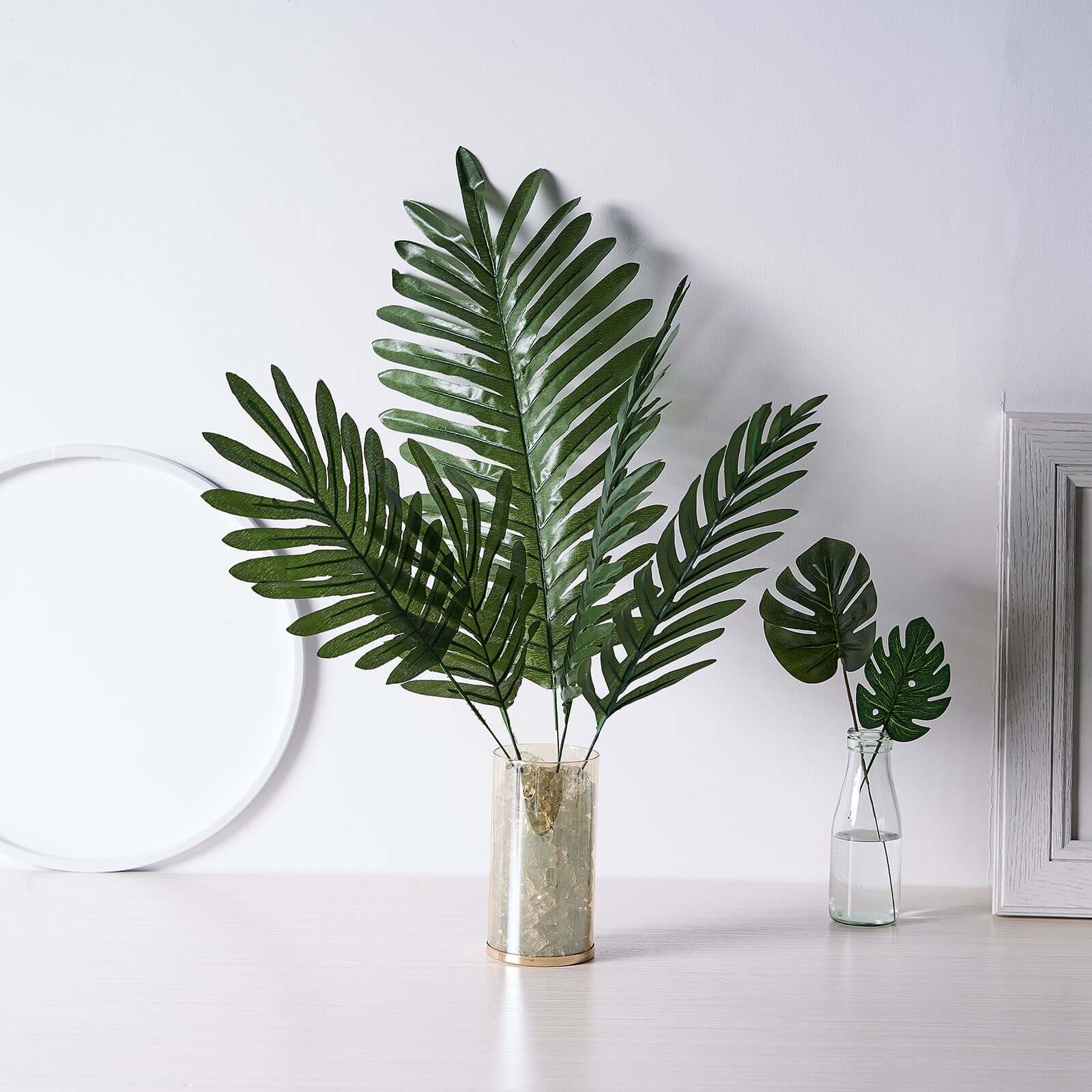 5 Stems Assorted Green Artificial Silk Tropical Palm Leaf Plants