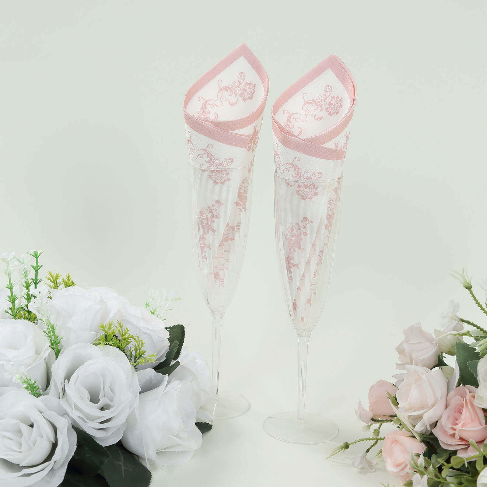 50 Pack 2-Ply Paper Beverage Napkins in White Matte Pink Damask Floral Pattern, Disposable Cocktail Napkins - Highly Absorbent & Soft