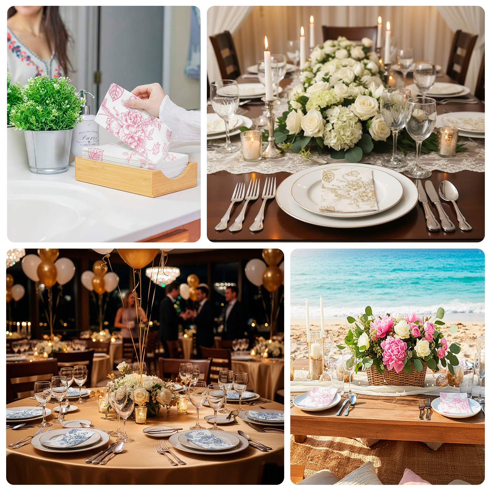 50 Pack 2-Ply Paper Party Napkins in French Toile Floral Pattern, Matte Lavender and White Highly Absorbent Soft Disposable Dinner Napkins