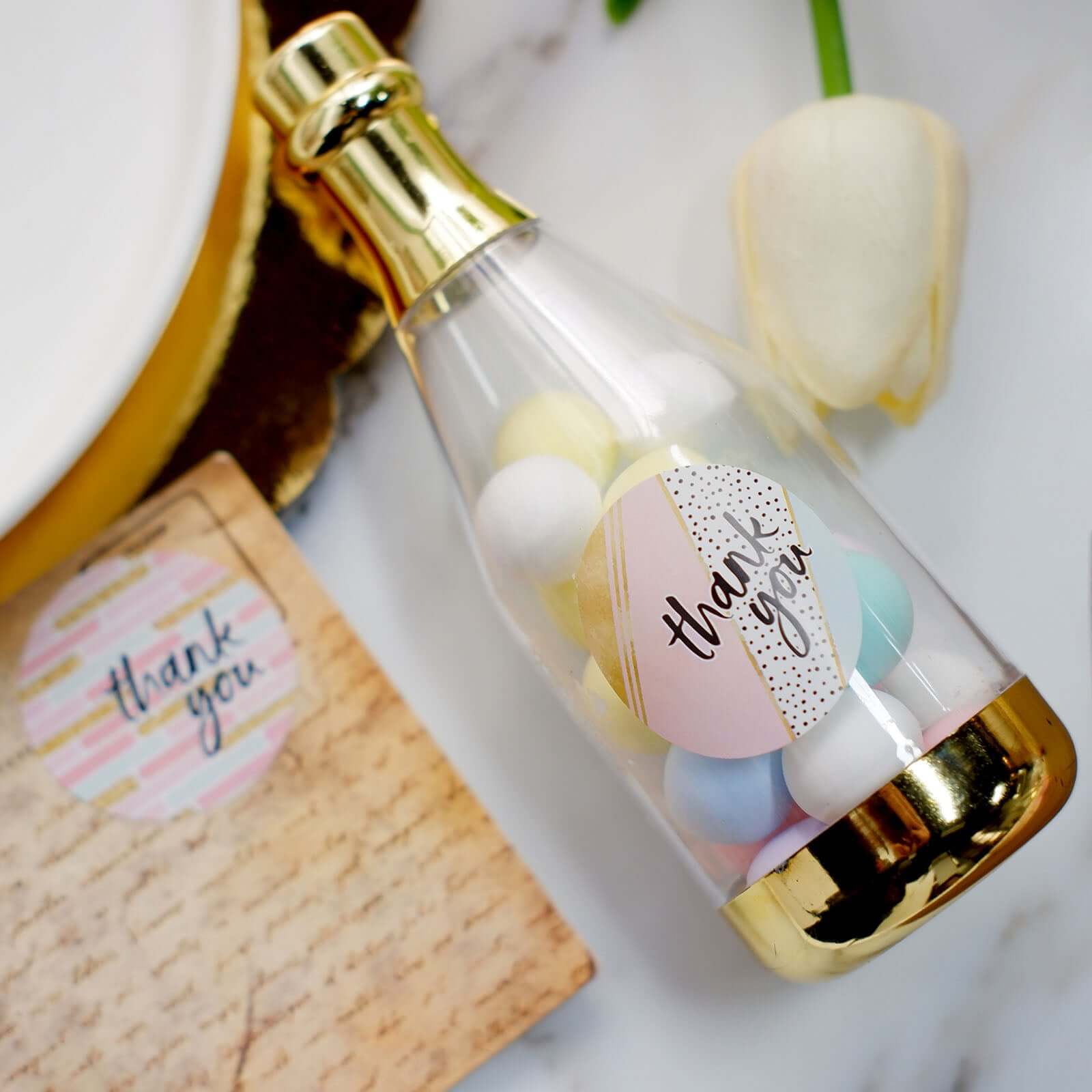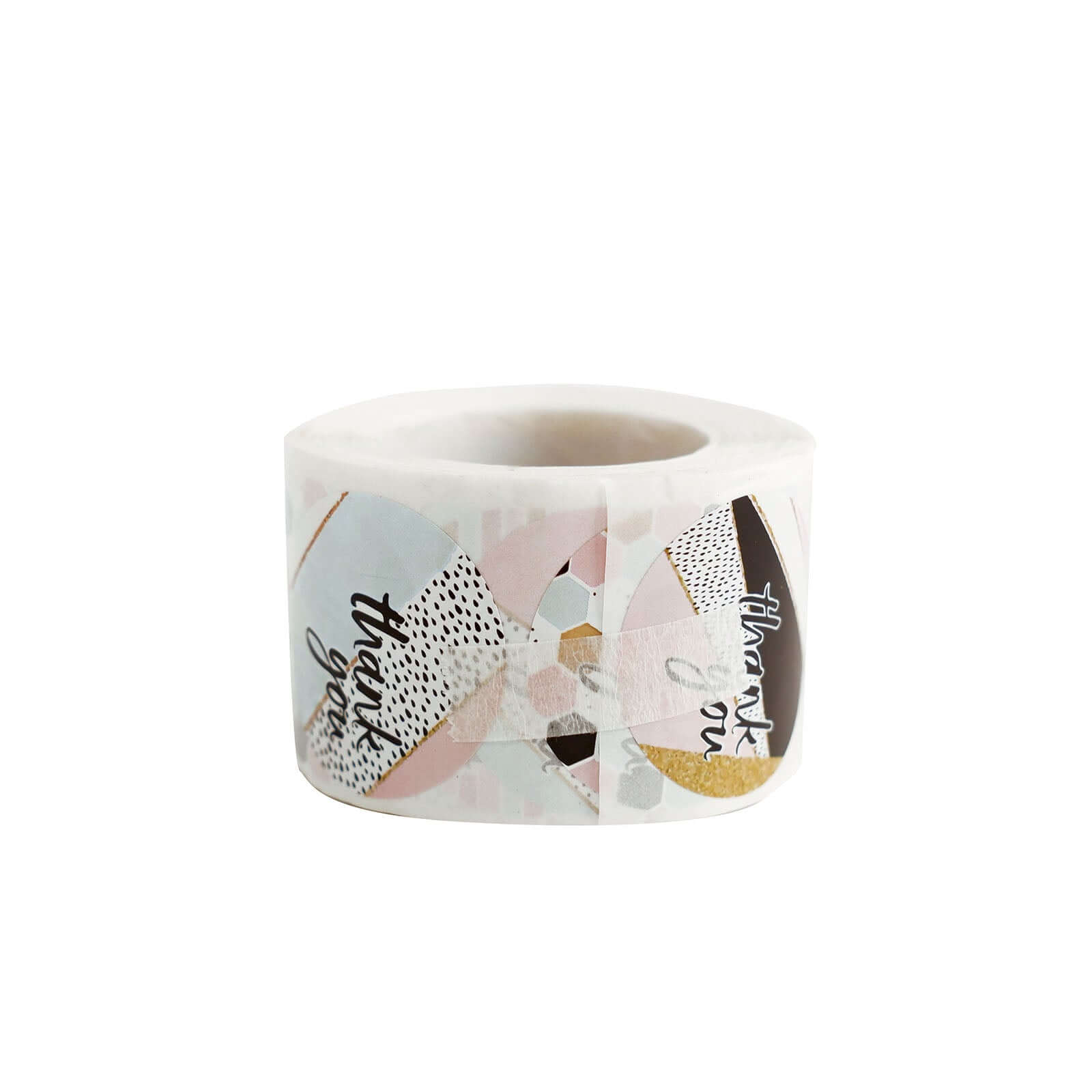500Pcs 1.5" Thank You Black White Gold Pink Glam Stickers Roll, Labels For DIY Envelope Seal Assorted Geometric Design - Round