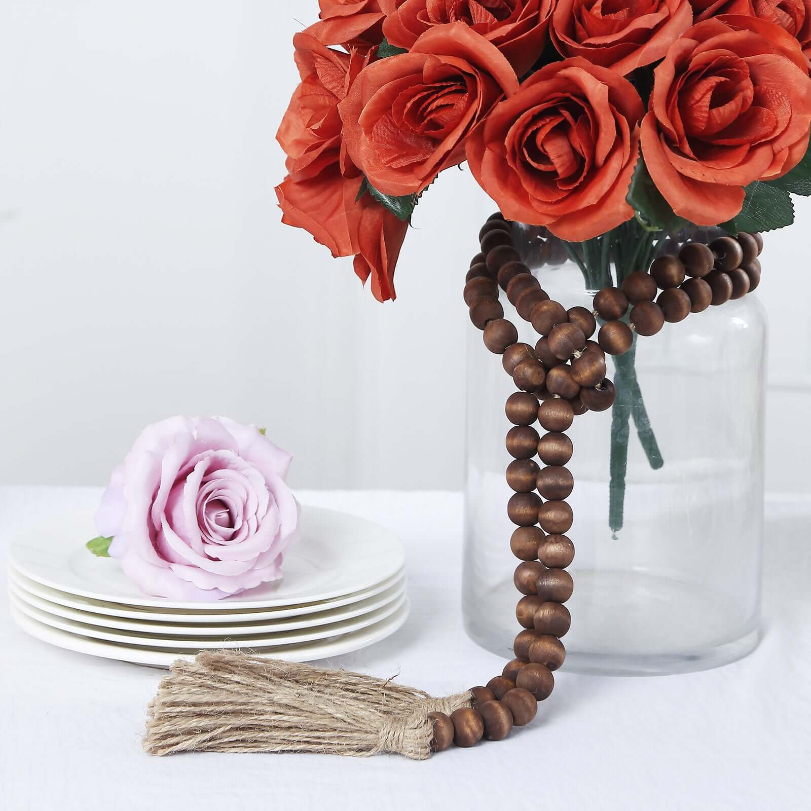 55" Brown Rustic Boho Chic Wood Bead Garland With Tassels, Farmhouse Country Wood Bead Chain