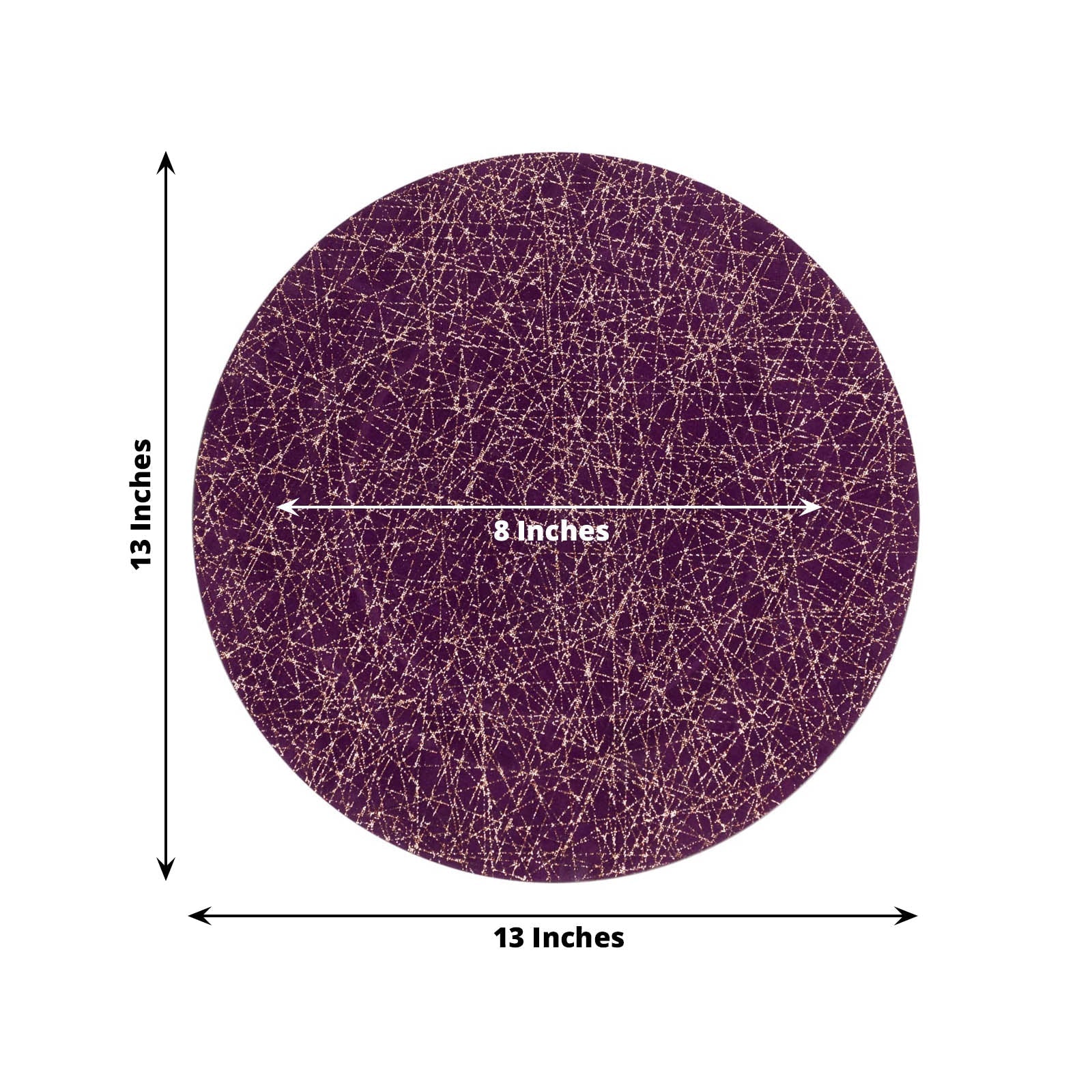 6-Pack Acrylic Round Charger Plates 13" in Purple with Gold Glitter Abstract Lines Pattern, Decorative Dinner Party Charger Tableware