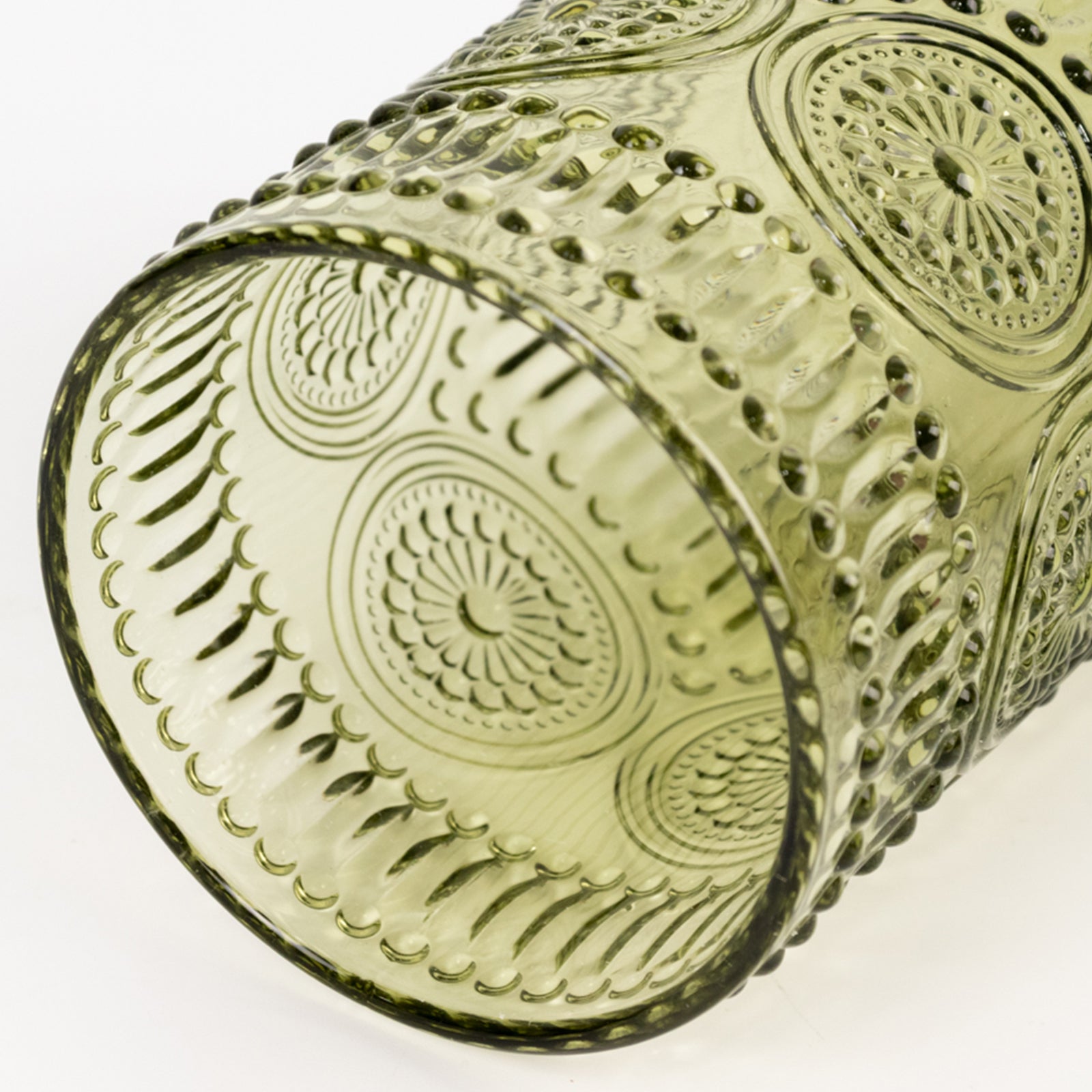 6-Pack Glass Tumblers Dusty Sage Green Vintage Embossed Design with Textured Floral Pattern - Highball Glasses for Drinks & Parties 14oz