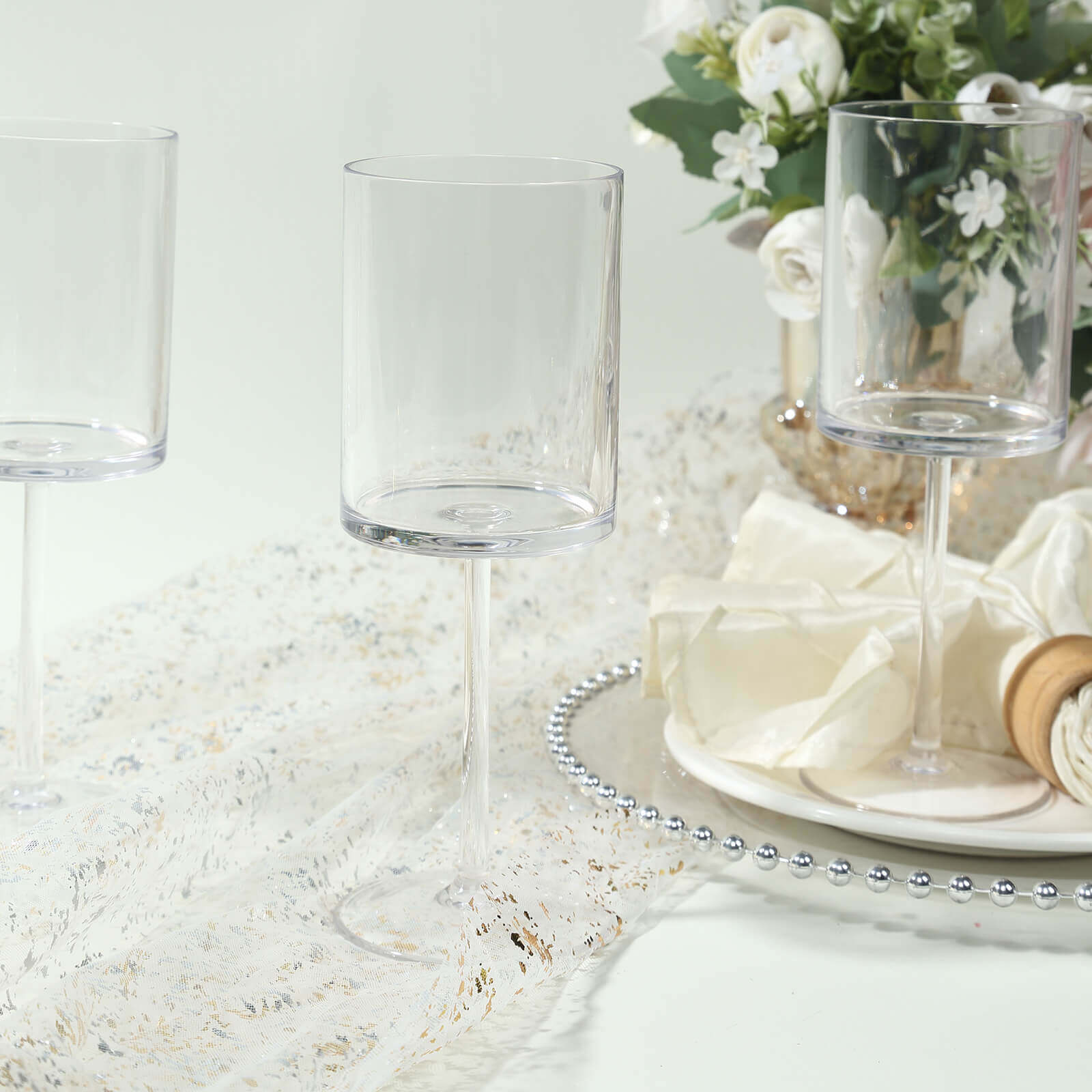 6-Pack Plastic Cocktail Glasses Clear Cylindrical Long Stem - Shatterproof Tumblers 10oz