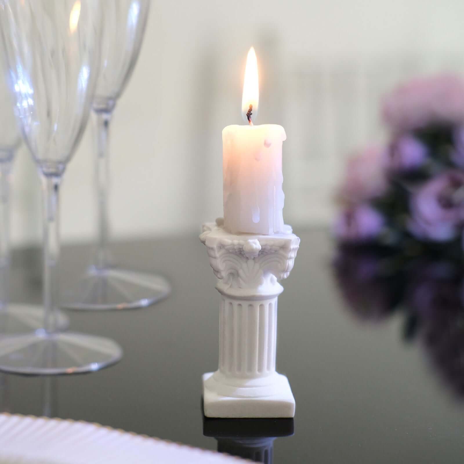 6-Pack Resin Roman Column Pillar Pedestal Candle Holders, Greek Statue Antique White Stands Sturdy Decorative Design 2.5"