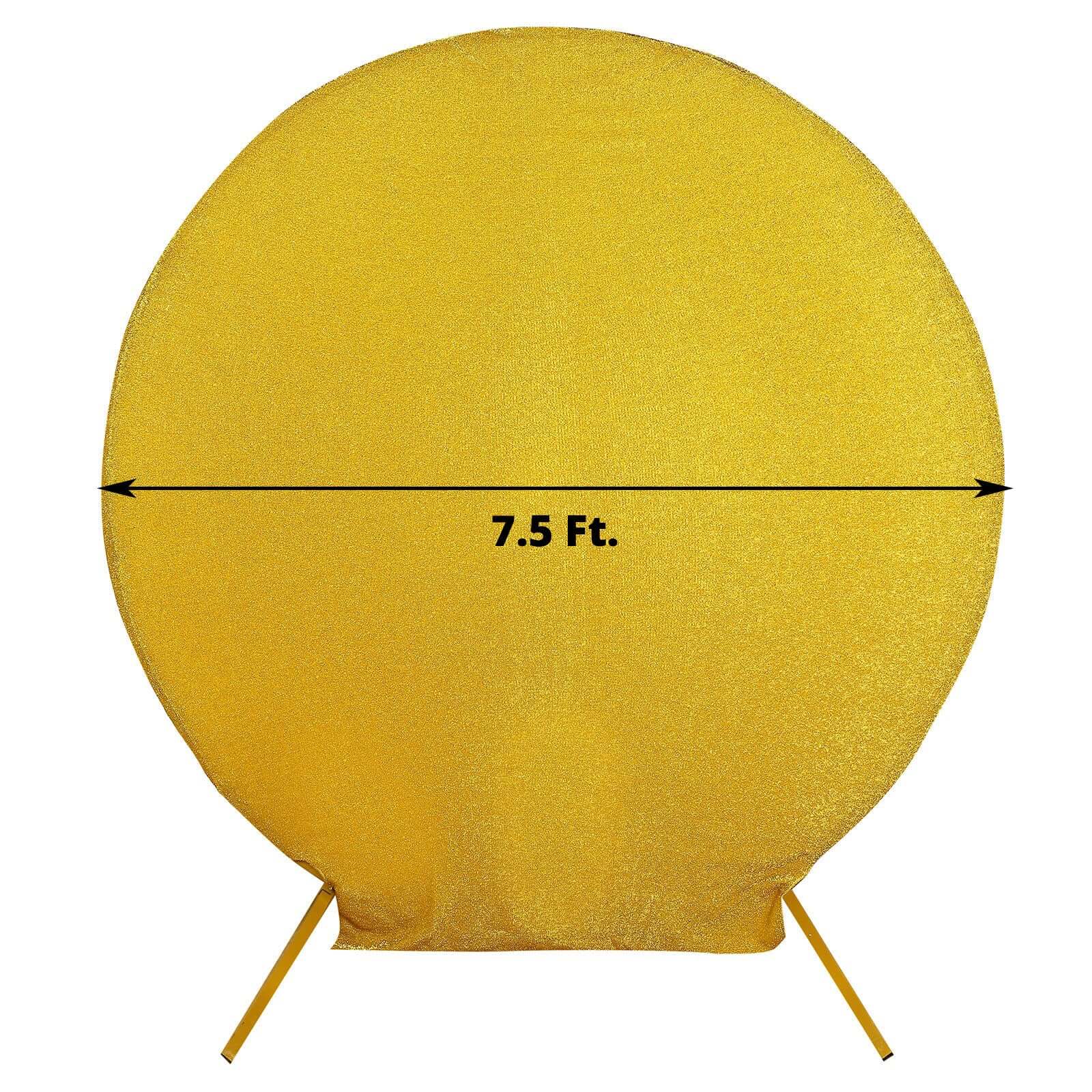 7.5ft Gold Metallic Shimmer Tinsel Spandex Round Wedding Arch Cover, 2-Sided Photo Backdrop