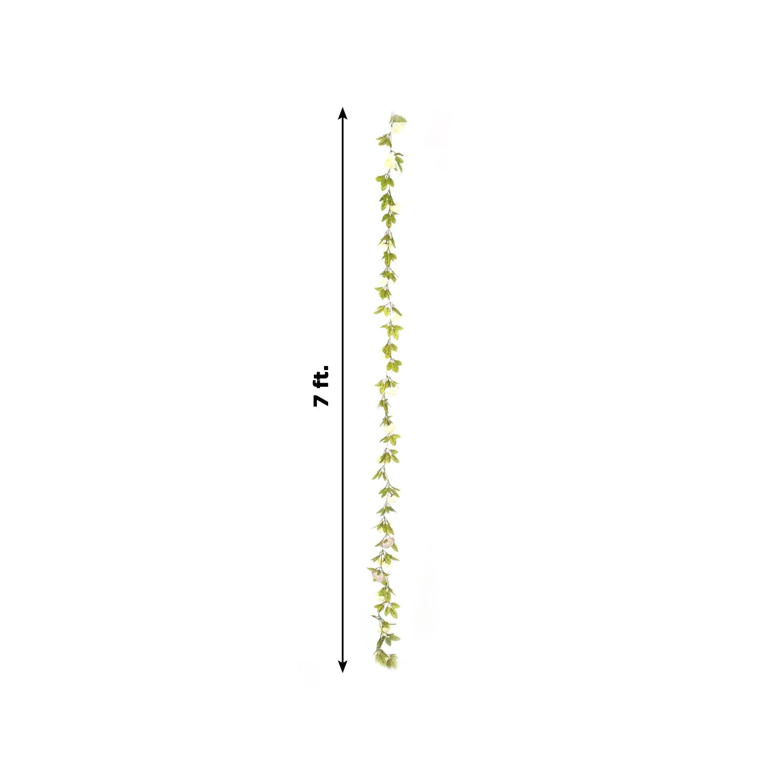 7ft 20 LED White Silk Rose Flower Garland Vine String Lights, Warm White Battery Operated