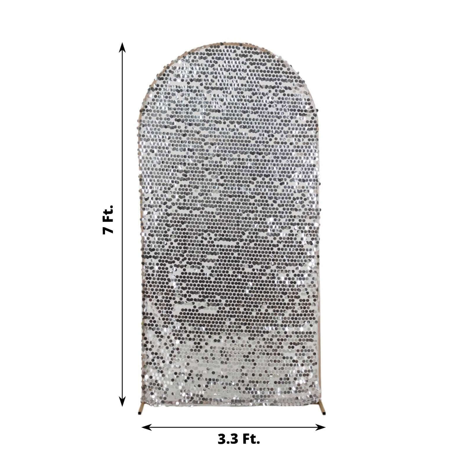 7ft Sparkly Silver Big Payette Sequin Fitted Wedding Arch Cover for Round Top Chiara Backdrop Stand