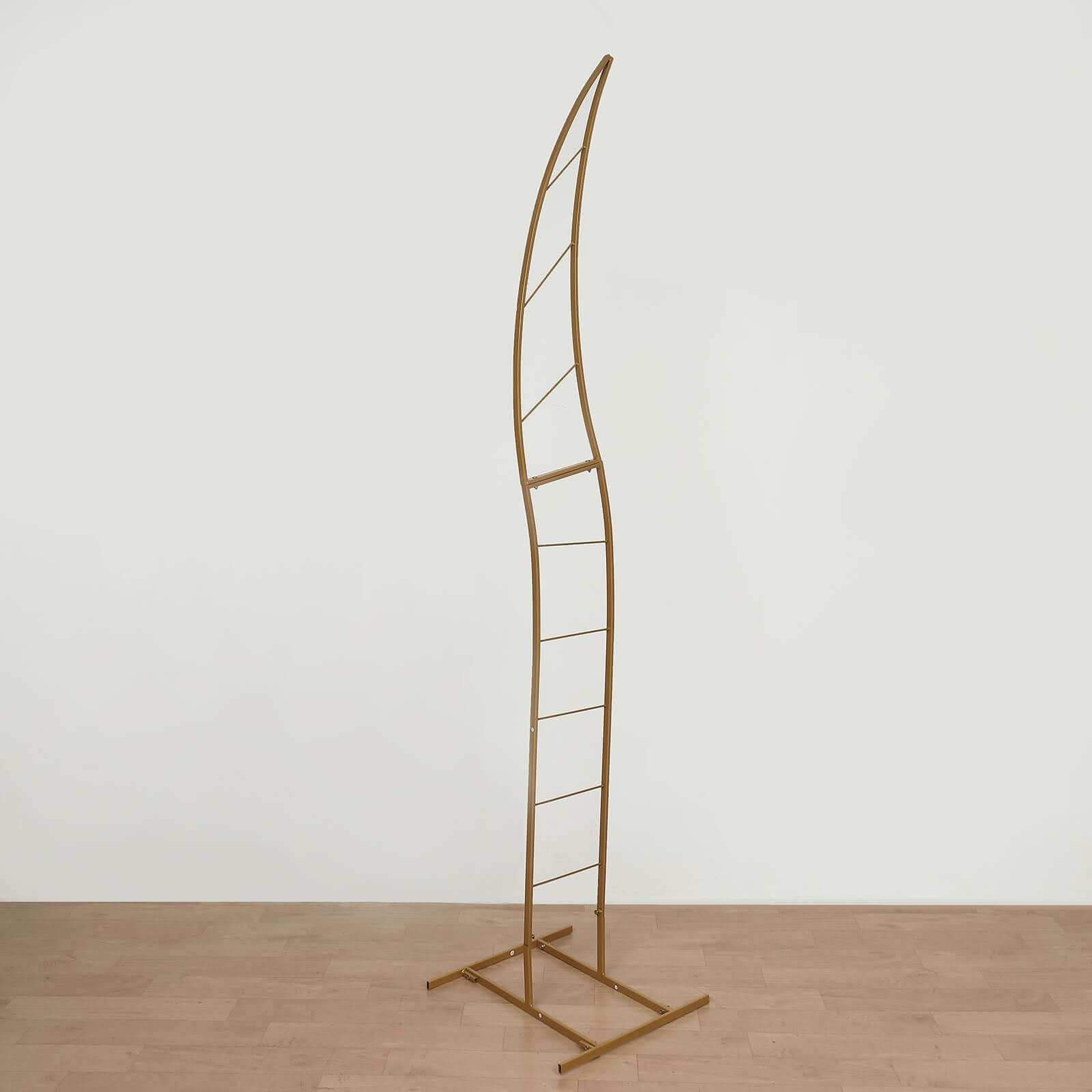 8ft Gold Metal Curved Flower Frame Balloon Arch Stand, Collapsible Wedding Aisle Photo Backdrop With Solid Rectangular Base