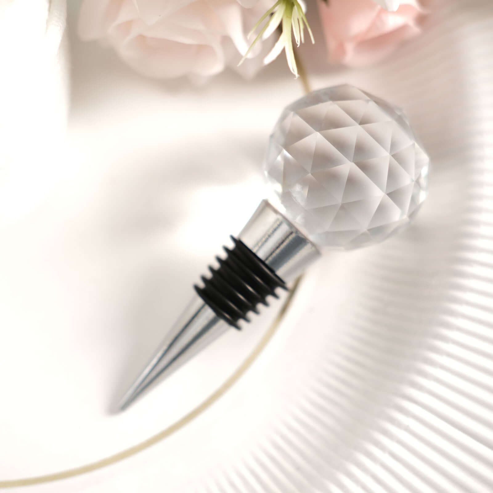 Crystal Glass Ball Metal Wine Bottle Stopper Plug Party Favor Gift Box - Clear Box, Thank You Card, and Ribbon Included