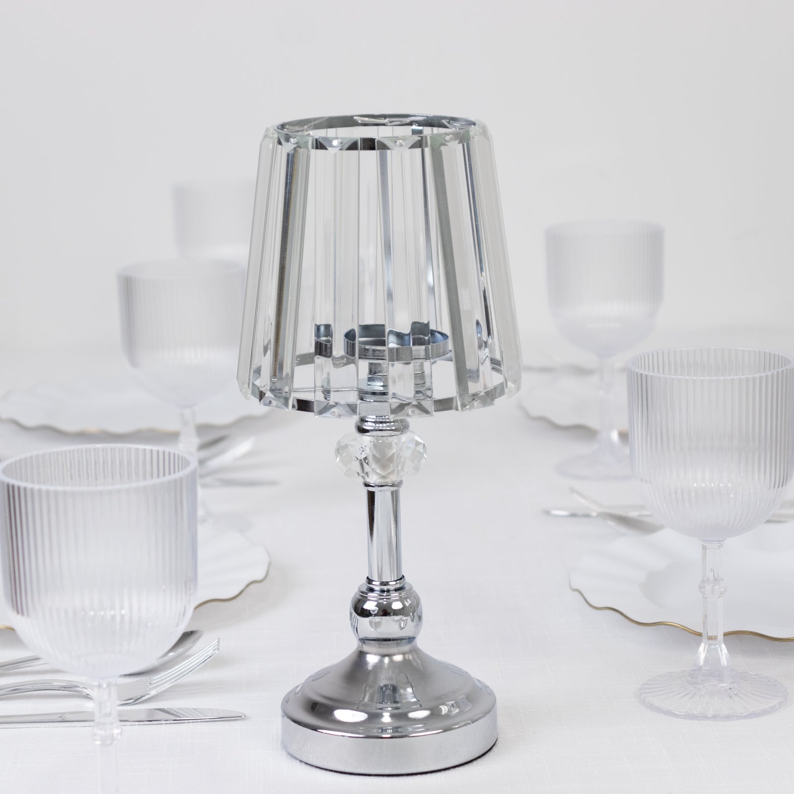 2-Pack 11" Crystal Pendant Candle Holders - Classic Empire Lamp Shade Style in Silver, Votive Candle Stand For Table Centerpieces