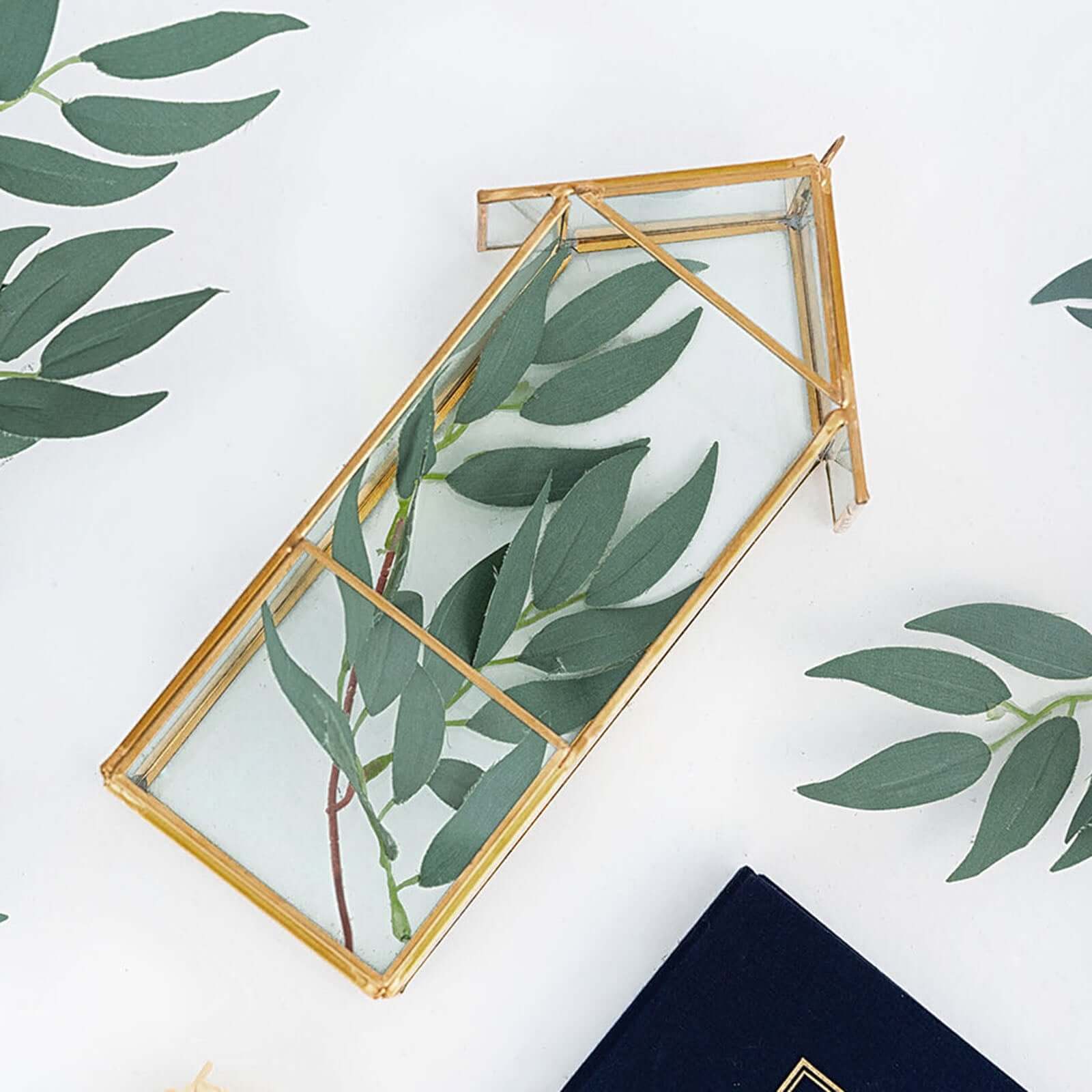 Glass Terrarium Hanging House Lantern Design Metal Gold - Versatile Holder for Air Plants & Displays 11"