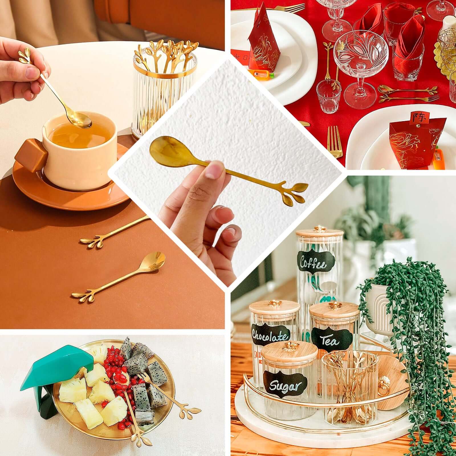 Gold Metal Spoon & Fork Pre-Packed Wedding Party Favors Set With Leaf Shaped Handle, Bridal Shower Souvenir Gift Box - 5"