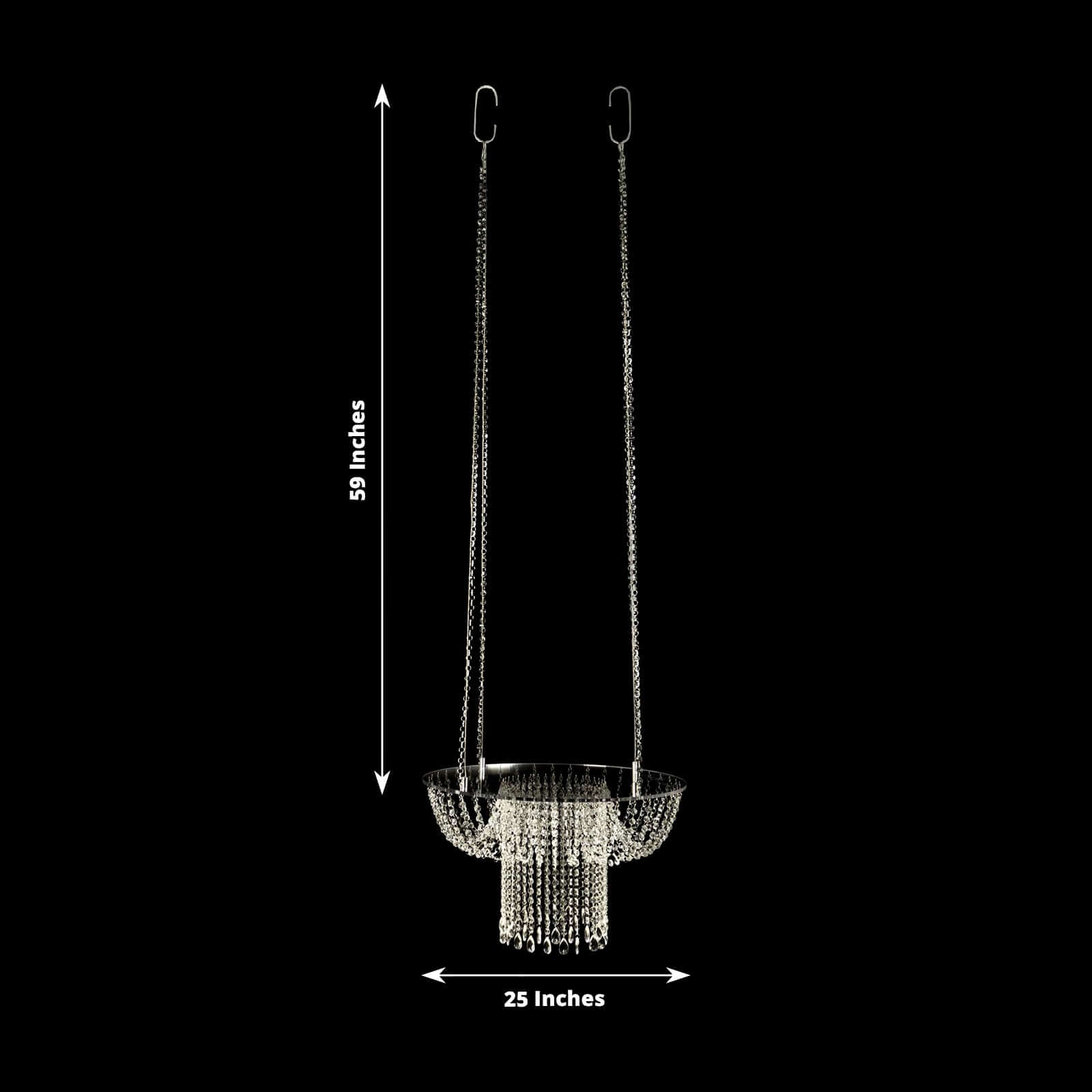 Acrylic Hanging Chandelier Cake Stand with Crystal Drapes - Suspended Round Wedding Cake Swing with 5ft Steel Wire Chains 25"