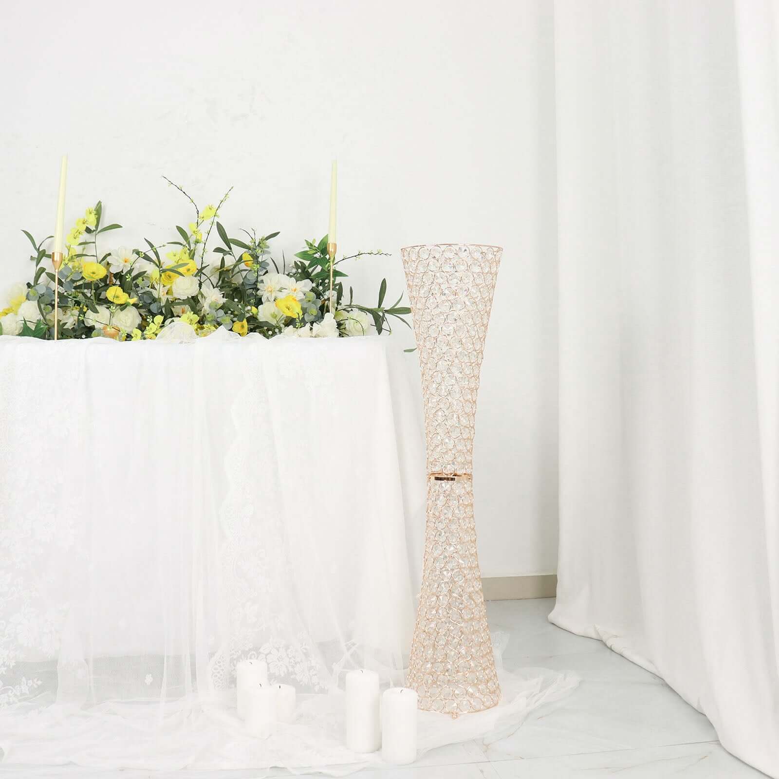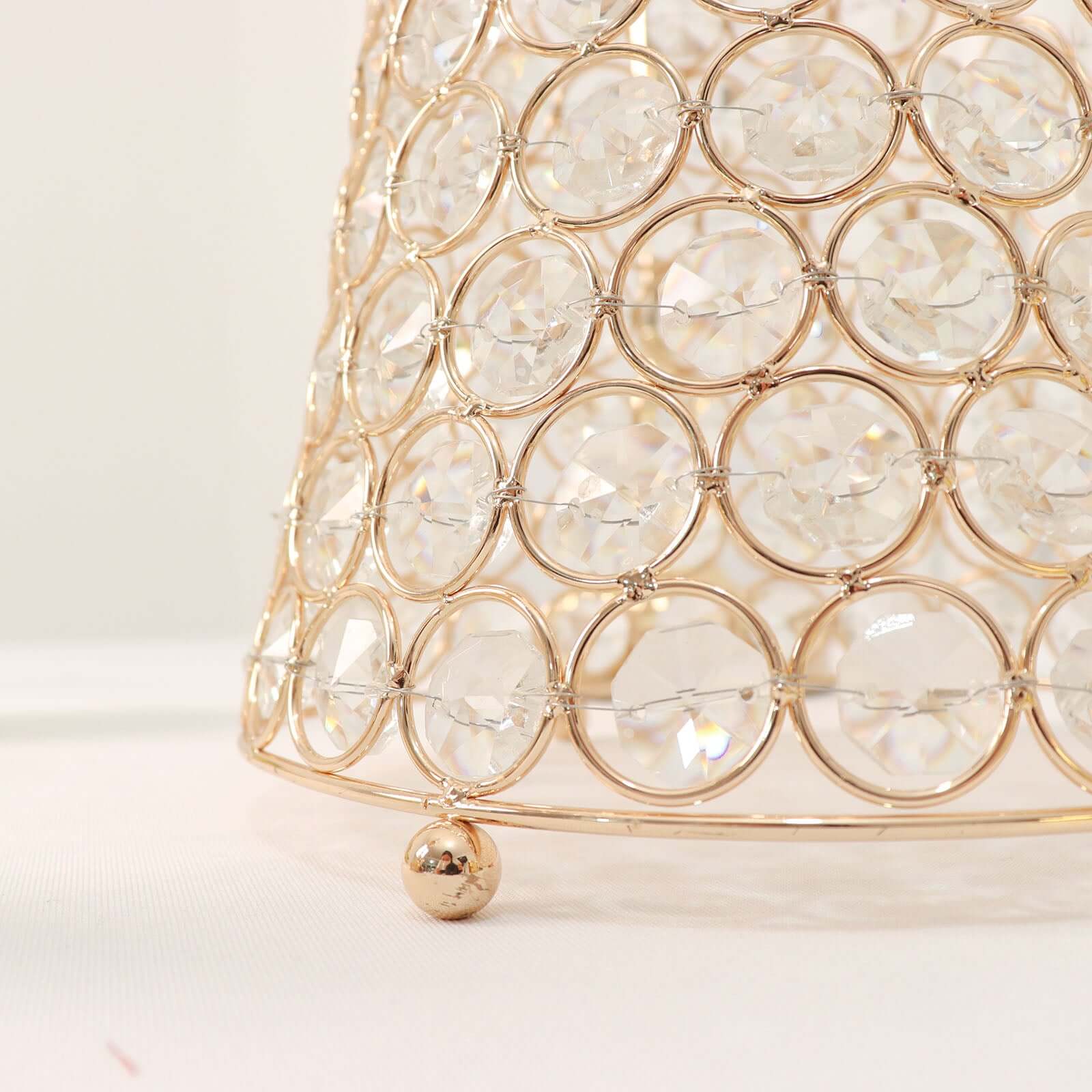 Metal Hurricane Floral Vase Centerpiece Metallic Gold with Crystal Beaded Design - Decorative Table Piece 36"
