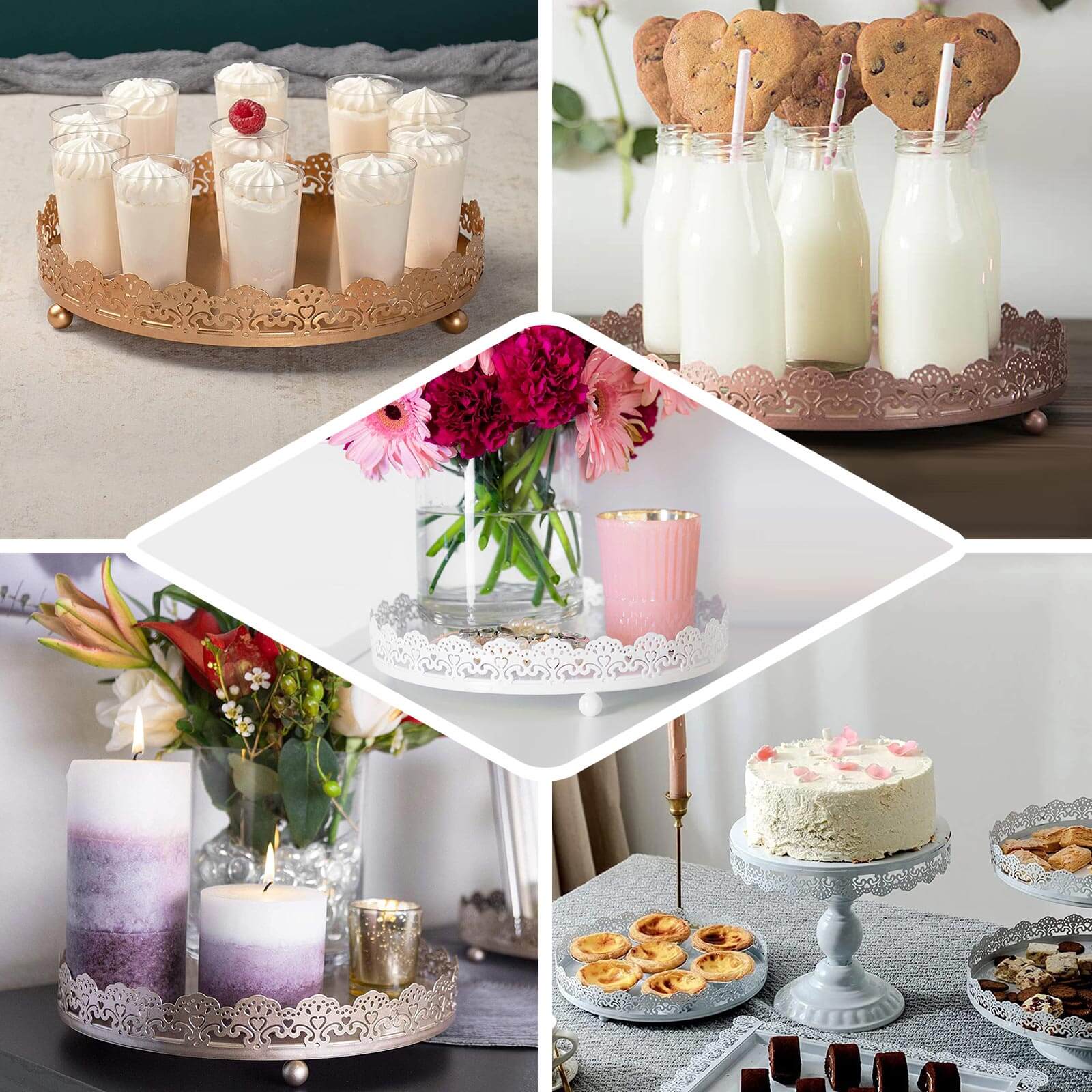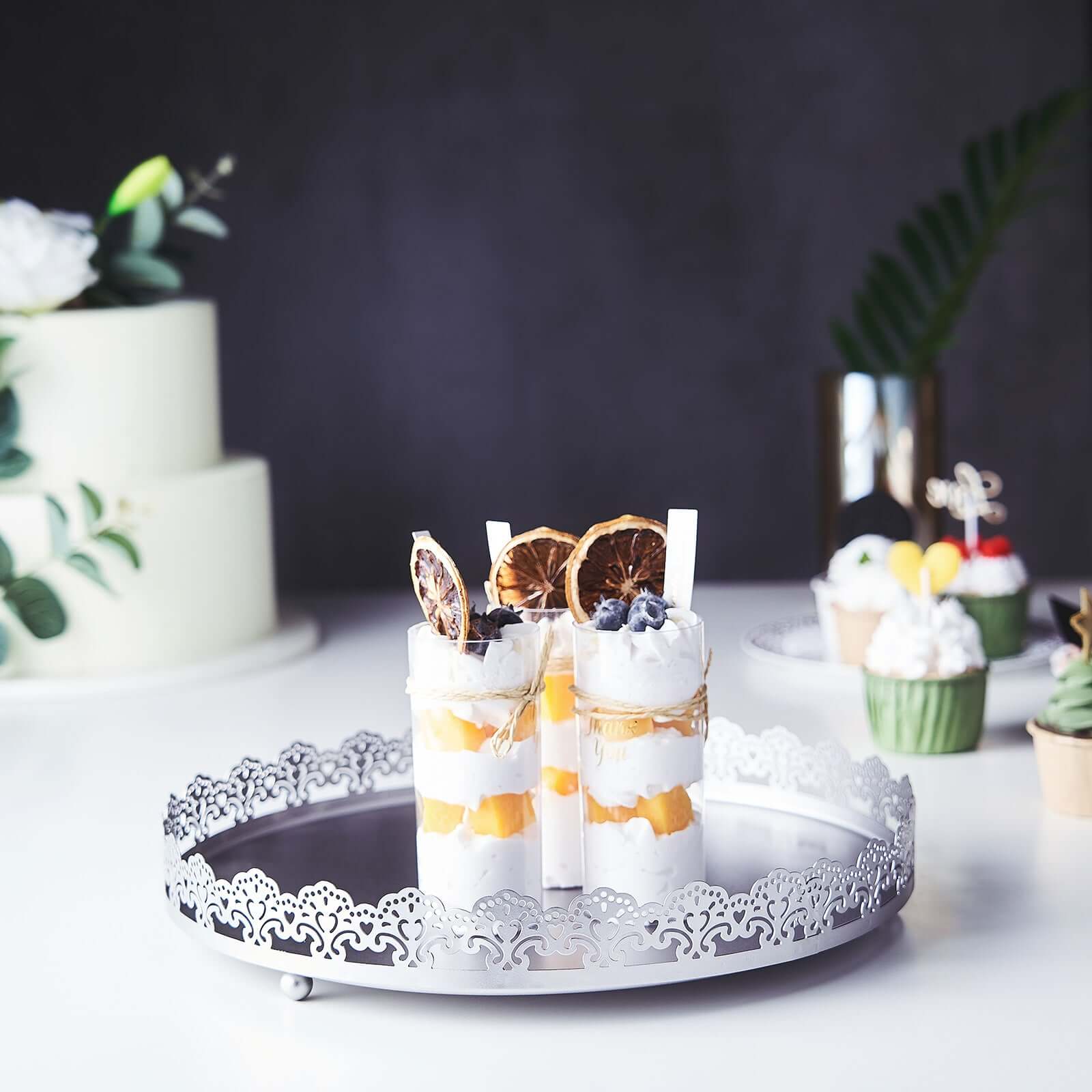 Metal Round Serving Tray 12" in Silver with Embellished Rims, Stylish Decorative Vanity Tray Centerpiece