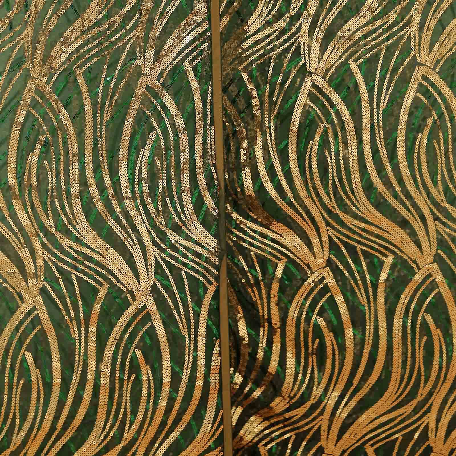 Set of 3 Hunter Emerald Green Wave Mesh Chiara Wedding Arch Covers With Gold Embroidered Sequins, Fitted Covers For Round Top Backdrop Stands - 5ft,6ft,7ft