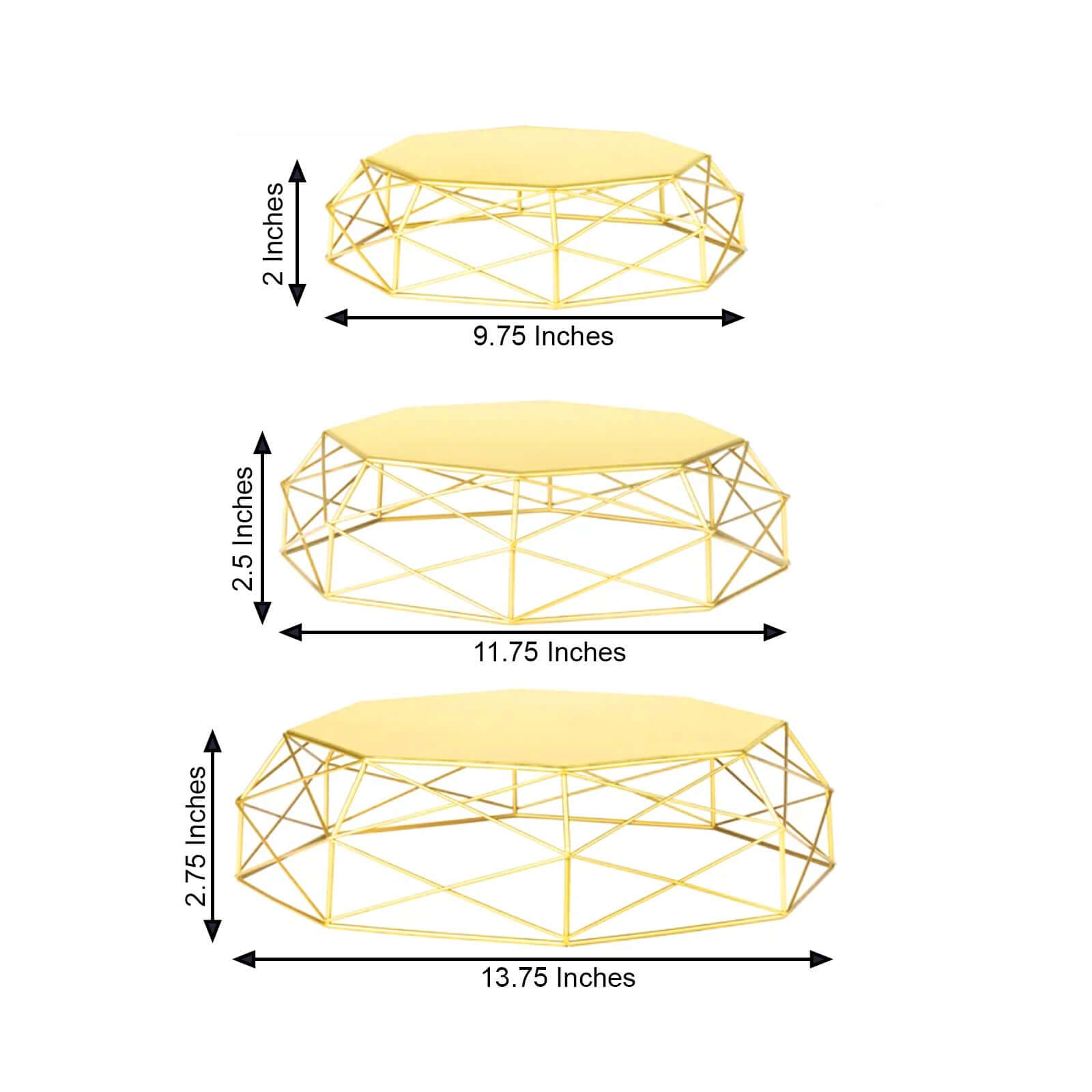 Set of 3 Metal Cake Stands Geometric Reversible Octagon Design Gold - Dessert Display Baskets 7", 9", 11"