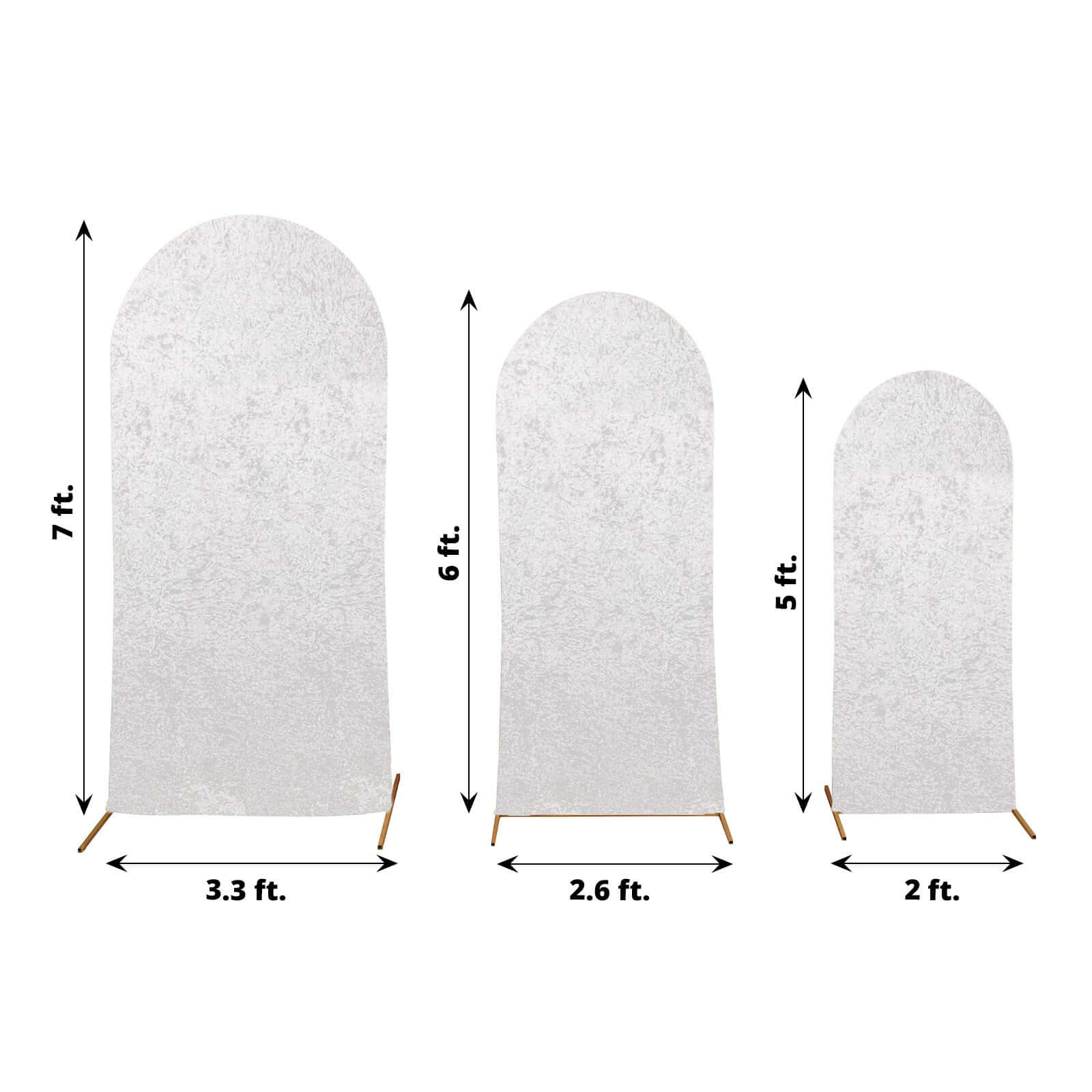 Set of 3 White Crushed Velvet Chiara Backdrop Stand Covers For Round Top Wedding Arches - 5ft, 6ft, 7ft