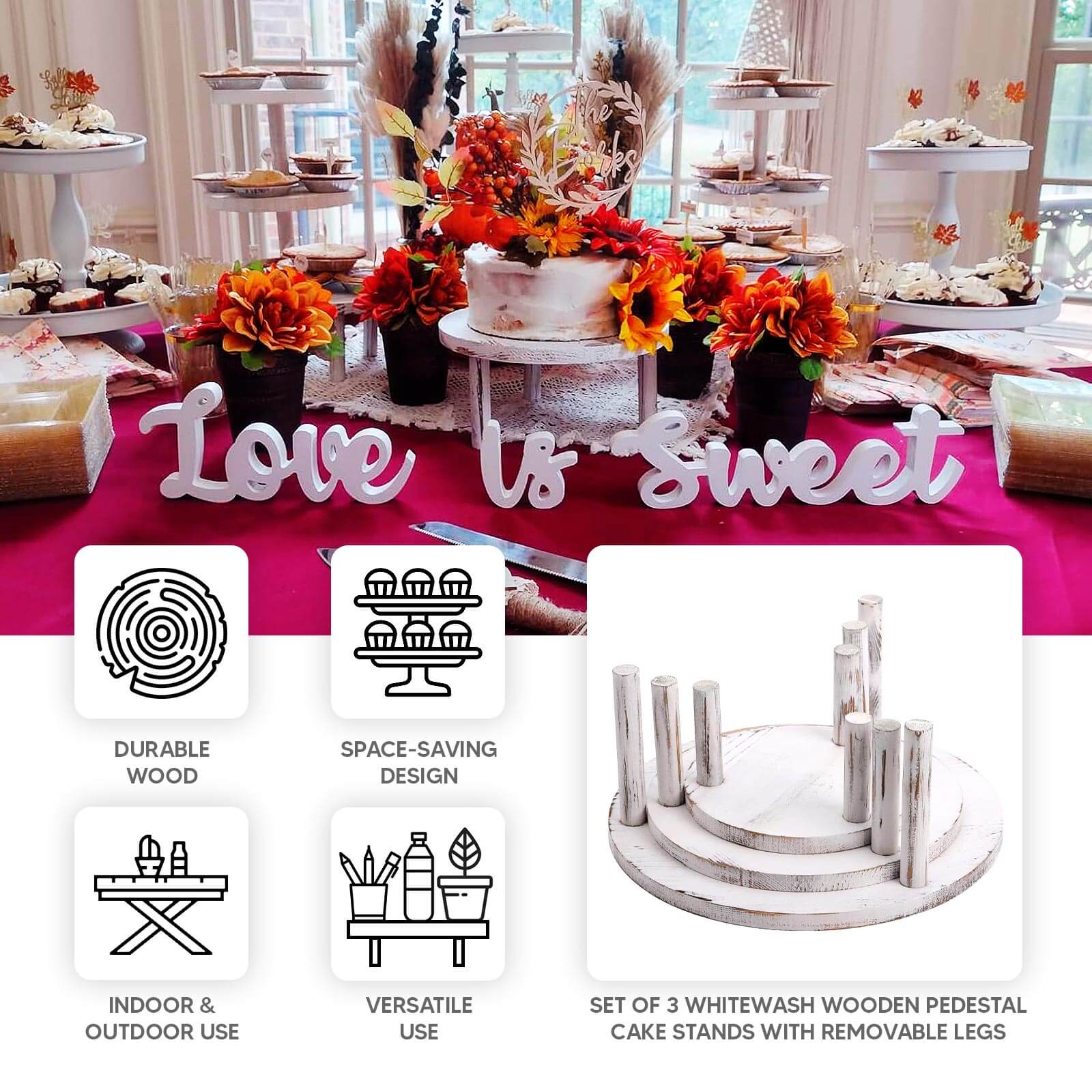 - Note: Listing is for Wooden Cake Stands only. Any other decorative accessories are not included.