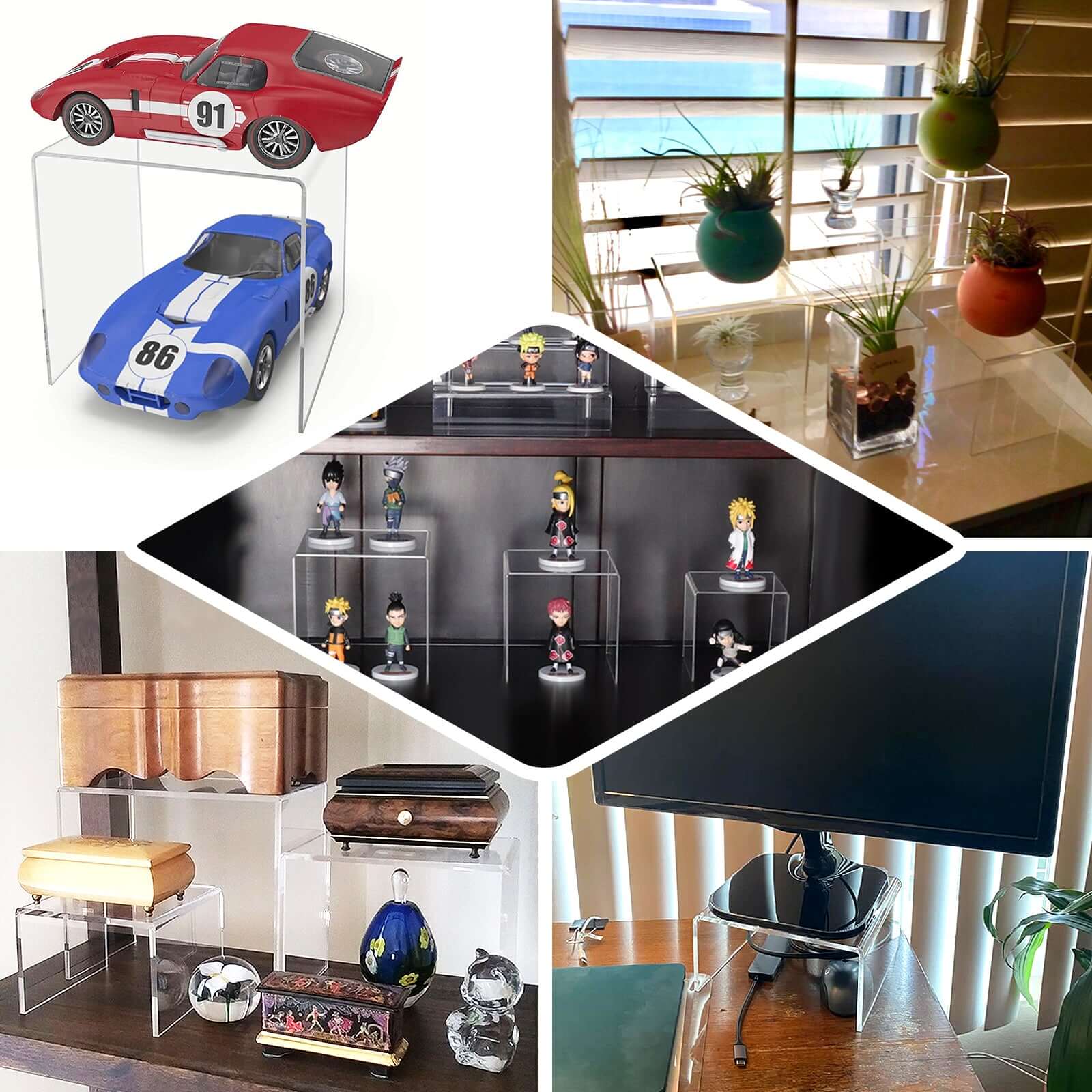 - Risers for Jewelry Showcase, Food Displays, Dessert Display, Pop figures, Cosmetics Storage, Vases, Figurines Display